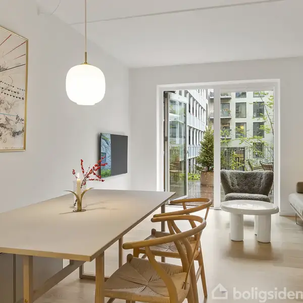 En moderne og indflytningsklar bolig med sjældent gode udearealer – perfekt til dig, der ønsker nybyg, komfort og ekstra plads både inde og ude. LEJLIGHED Denne nyopførte 3-værelses lejlighed fra 2025 byder på knap 80 veldisponerede kvadratmeter kombineret med ekstraordinære udearealer, som sjældent ses i nybyggeri. Fra entréen kommer du ind i lejlighedens hjerterum et naturligt samlingspunkt. Her mødes du af et lyst køkken-alrum, hvor der er god plads til både spisebord og sofaarrangement. He