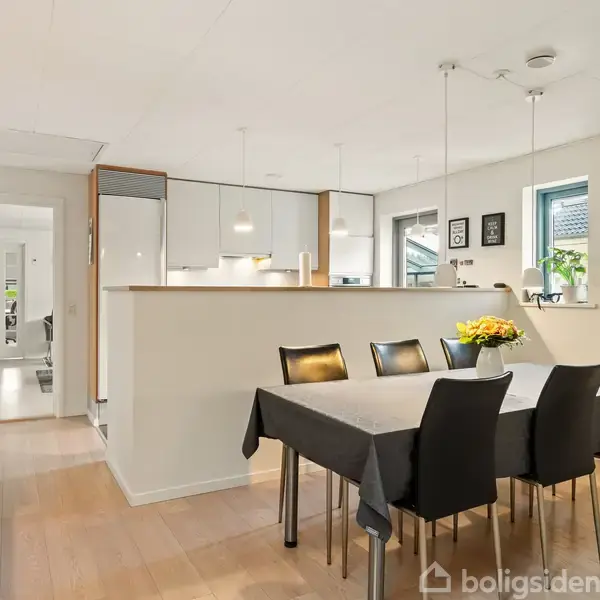 Denne indflytningsklare familievilla i hjertet af Mejdal kombinerer moderne komfort med en attraktiv beliggenhed tæt på både natur og byliv. Villaen er løbende renoveret med sans for både funktionalitet og æstetik – her er bl.a. et moderne køkken og to stilrene badeværelser. Derudover er der installeret ladestander til elbil, solceller, centralstøvsuger og Nilan ventilationsanlæg. Facaderne er pudsede og hvidmalede, hvilket giver huset et nutidigt og indbydende udtryk. Planløsningen er skabt