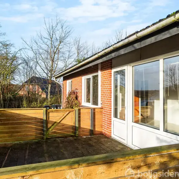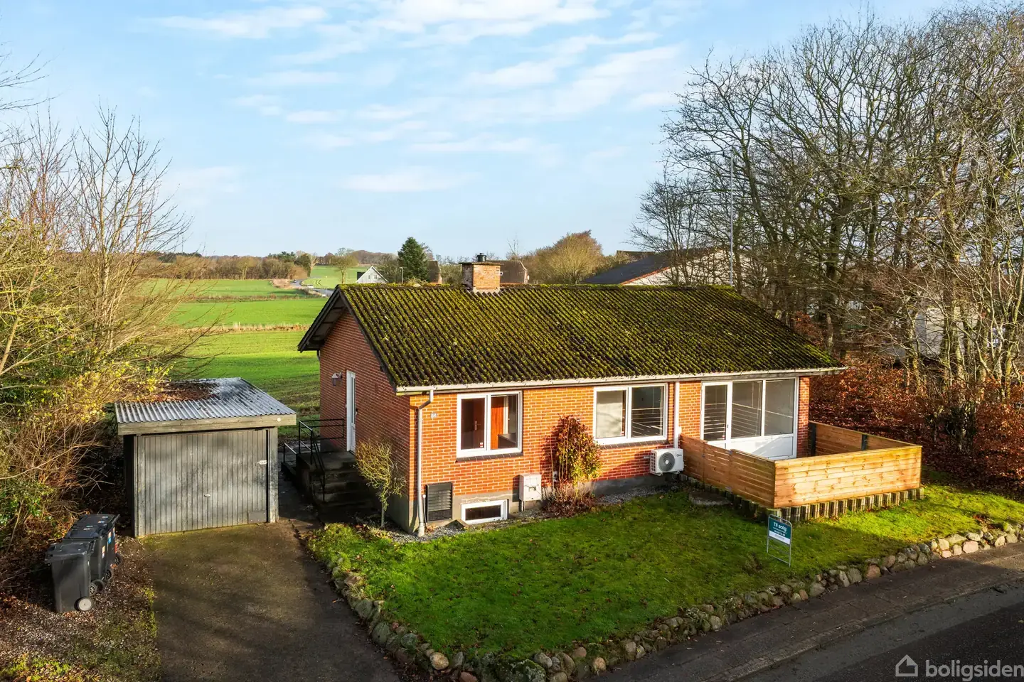 Der er tale om en klassisk rødstensvilla i Mammen med rolig placering på en stille vej og åben udsigt over markerne. Indenfor er der en entré, som fordeler til to værelser, badeværelse og stue. Planløsningen er enkel og funktionel. Stuen har god størrelse med naturlig opdeling mellem spiseafsnit og opholdsdel samt mulighed for at etablere et ekstra værelse, hvis der er behov for det. Store vinduespartier mod haven giver udsigt til markerne, og herfra er der udgang til en sydvestvendt terrasse i