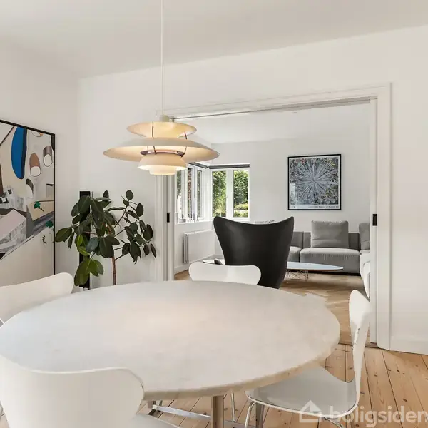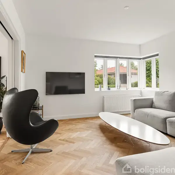 Sjældent udbydes en funkisvilla i Ålykkekvarteret, et af Koldings mest attraktive kvarterer, hvor arkitektur og moderne komfort går op i en højere enhed.Villaen fra 1932 fremstår med sin hvidpudsede facade og klassiske hjørnevinduer som et smukt eksempel på nænsom og kvalitetsbevidst renovering. Originale døre og snedkerfremstillede elementer viderefører den oprindelige stil med stor respekt og autenticitet. Siden 2009 er der investeret markant i teknik og komfort: fjernvarme, nyt el og VVS samt