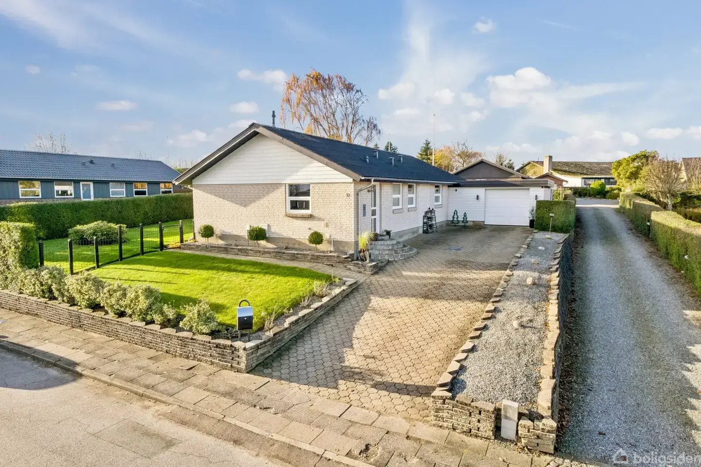 Er I på jagt efter plads og ro? Så har vi det rette match til jer med denne indflytningsklare etplansvilla, der byder på hele 146 kvadratmeter, en dejlig have med perfekt orientering mod solen – og en beliggenhed i trygge, naturskønne rammer.Lyse mursten og sadeltag indrammer de mange, velindrettede kvadratmeter, der snart kan blive jeres. Lys, luft og store rum byder jer velkommen indendøre i den yderst indbydende bolig. Villaen fra 1975 har nemlig gennemgået en større renovering, så den i dag