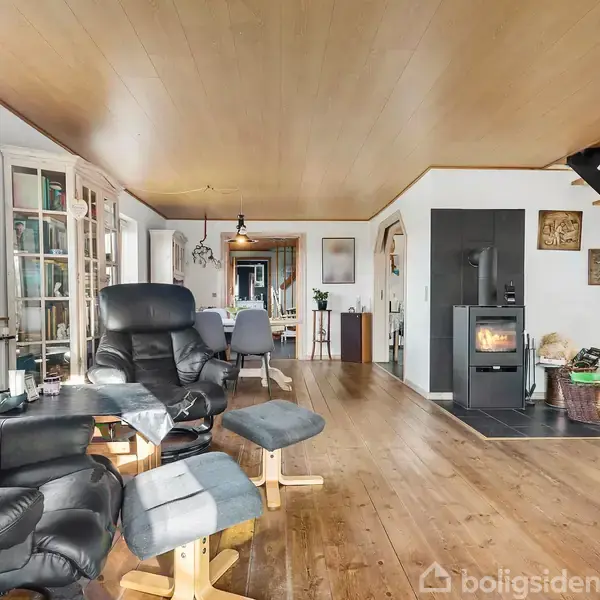 Åbent hus med tilmeldingskrav 3/3 - klik på billede - Drømmer du om et rummeligt og charmerende landhus med plads til både familie og hobbyer? Denne villa på knap 200 m² byder på en enestående kombination af komfort og funktionalitet, perfekt placeret på en grund på næsten 5.000 m². Huset byder på 4 rummelige soverum, et flot og funktionelt spisekøkken samt et moderne badeværelse med bruseniche. De lyse opholdsstuer og den indbydende havestue giver rig mulighed for afslapning og samvær året rundt. Alt fremstår hjemligt og velholdt, hvilket gør det let at føle sig hjemme fra første dag. Udenfor finder du en stor have med masser af plads til leg, afslapning og havedrømme. Til hobbyentusiasten er der et stort værksted, hvor der er plads til at udfolde sig med biler, projekter eller andre kreative interesser. Derudover er der en rummelig dobbeltgarage, flere udhuse og god opbevaringsplads, som sikrer, at alt har sin plads. Beliggenheden er både rolig og praktisk – huset ligger tilbagetrukket fra landevejen, hvilket giver privatliv og fred, men samtidig tæt på motorvejen, så du nemt kan komme omkring. Ejendommen opvarmes med en brændeovn og et moderne luft-til-vand varmepumpeanlæg, som sørger for energieffektiv og behagelig varme hele året rundt. Dette landhus er ideelt for familien, der ønsker god plads både inde og ude, samtidig med at man bor naturskønt og praktisk. Her får du muligheden for at skabe dit drømmehjem med masser af muligheder og potentiale.
