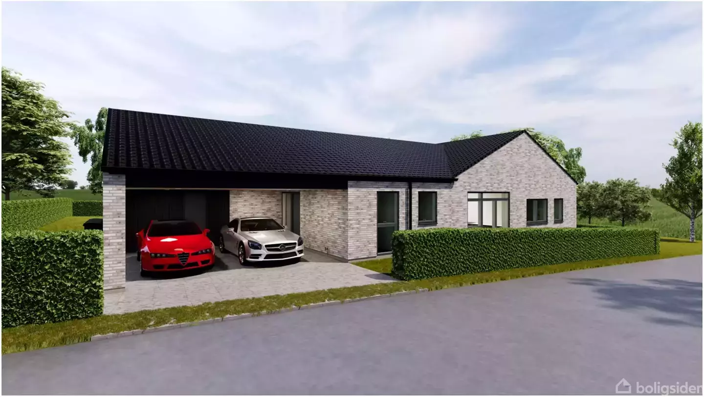 Velkommen til Marie Hammers Vej - en udstykning placeret midt i Låsby!Her finder I 8 ny udstykkede byggegrunde beliggende i skønne omgivelser med kort afstand til byens faciliteter.Med projektet på Marie Hammers Vej 4 får I en villa opført i gode materialer og med mange lækre detaljer. Bl.a. er her en loftshøjde på op til 2,68m, unikke arkitekttegnede tagrender og en moderne indretning med separatforældre-/børneafdeling. Husets hjerte er det lyse og rummelige køkkenalrum med stuen i forlængelse heraf. Husets ene afdeling er sænket i forhold til resten af huset, og her har man et rummeligt bryggers, samt en fordelings entre med indgang direkte fra den dobbelte carport. 2 børneværelser samt badeværelse. I forældreafdelingen er her soveværelse med walk-in, lækkert badeværelse og desuden et kontor/børneværelse.Derudover er der en dobbeltcarport, et redskabsskur samt en overdækket terrasse. Låsby er beliggende i Skanderborg Kommune - mellem storbyerne Silkeborg og Aarhus. Byen danner rammerne om en by med et stort fællesskab og mange aktiviteter for alle aldre. Byen har både indkøbsmuligheder, skole, daginstitutioner, idrætsanlæg, Låsby Søpark, Låsby Svømmebad samt idrætshal. Fra udstykningen er der blot 1 km til Låsby skole, så der kan køres hertil på få minutter eller blot 5 min. på cykel. På blot 20 min. kommer I via bil til Skanderborg, på blot 15 min. til Silkeborg og 25 min. til Aarhus via motorvejsnettet.DinBOLI´s dygtige byggerådgivere tager jer i hånden igennem hele processen, således I sammen kan skabe lige netop dét hjem, I går og drømmer om.I kan læse mere her: Boligen her er tegnet som et projekt til grunden, men kan ændres efter jeres ønske, ligesom I vil kunne få tegnet jeres drømmehus på en af de andre grunde i udstykningen.Der er ikke medtaget belægning og have i projektet. Alle muligheder er åbne, så kontakt os endelig hos EDC AROS Galten og hør meget mere om mulighederne, som kan skabe rammerne for jeres fremtidige hjem!