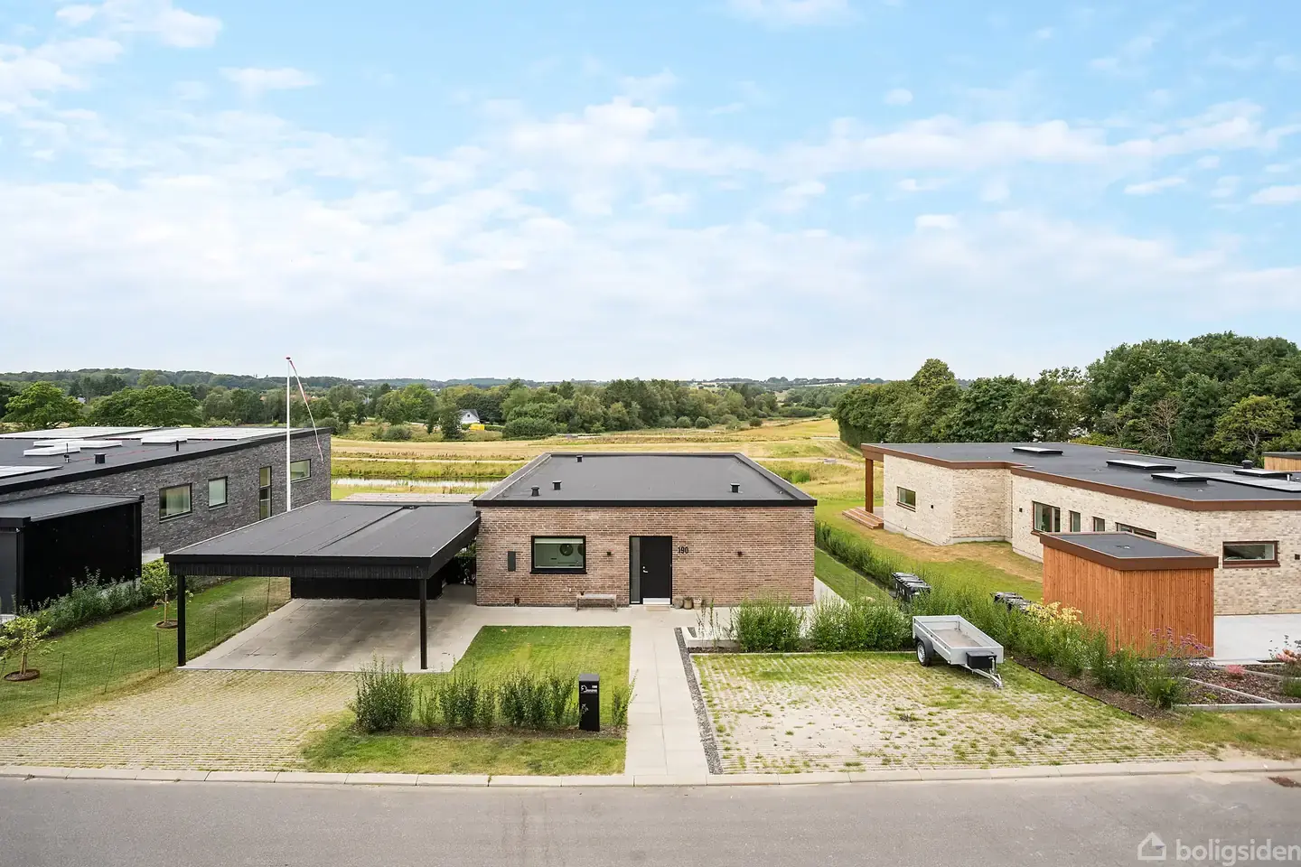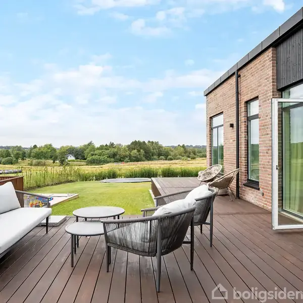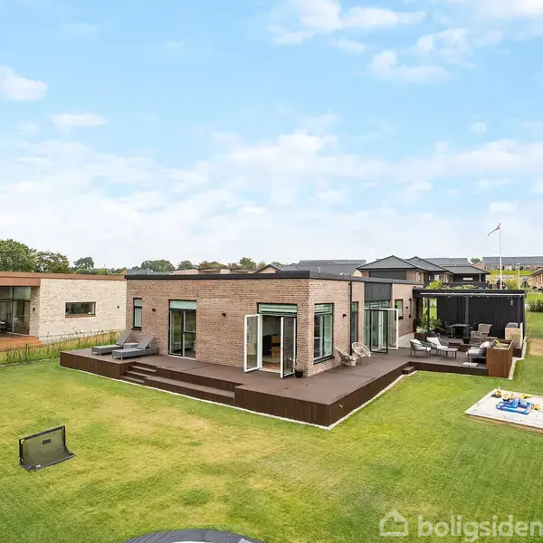 Moderne villa i første række til søenHer får I en funkisvilla fra 2022, der er lige til at flytte ind i. De 172 m² fordeler sig på tre værelser og en forældresuite med eget bad og walk-in. Husets hjerte er det store opholdsrum med køkken, alrum og stue i ét, hvor der er plads til både hverdag og gæster. Udenfor venter en nem have med carport, skur og en sydvendt terrasse, hvor I kan nyde søudsigten og solen fra morgen til aften.Her kan I krydse flere bokse af: Moderne funkisstil fra 2022, enkle