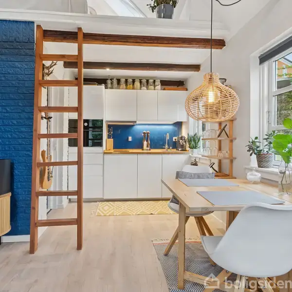 I denne lejlighed er der lidt særlige finesser. Det gælder eksempelvis loft til kip med fritlagte spær, den hyggelige hems og så det faktum, at der er egen have til boligen. Lejligheden udgøres af et fint, lille hus, som ligger ganske tæt ved Svendborgs centrum. Det er en lysegul facade og hvide sprossevinduer, der byder dig velkommen. Når du træder ind, fortsætter charmen, og det er tydeligt, at boligen er moderniseret. Det meste stod for tur i 2020, mens køkkenet er fra 2022, bryggerset i sku