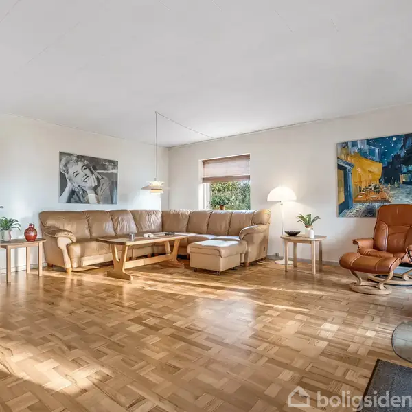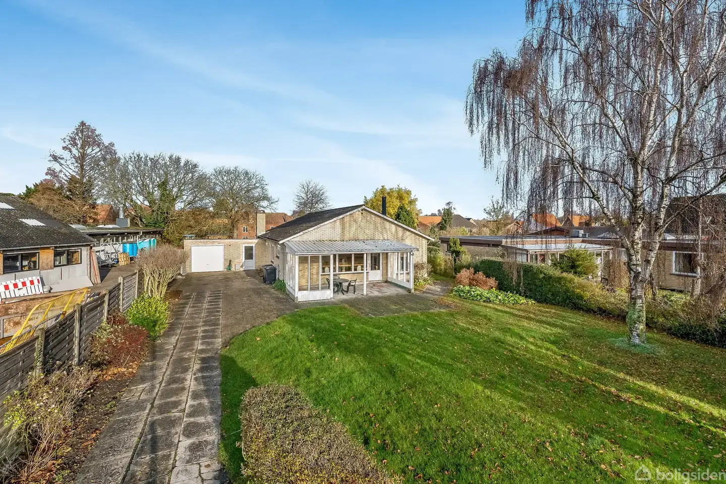 Centralt beliggende og funktionelt indrettet etplansvilla,Ejendommen opvarmes med fjernvarme kombineret med brændeovn.Indeholdende. Entre med indgang til stort badeværelse med bruser, toilet, håndvask og gulvvarme.2 børneværelser samt soveværelse. Køkken med ældre inventar.God stor sydvendt  vinkelstue med parketgulve, brændeovn og udgang til ældre sydvendt overdækket terrasse. Bryggers og grovkøkken.Indkørsel med muret garage. God lukket grund og have.Ejendommen er beliggende nær skole, indkøb