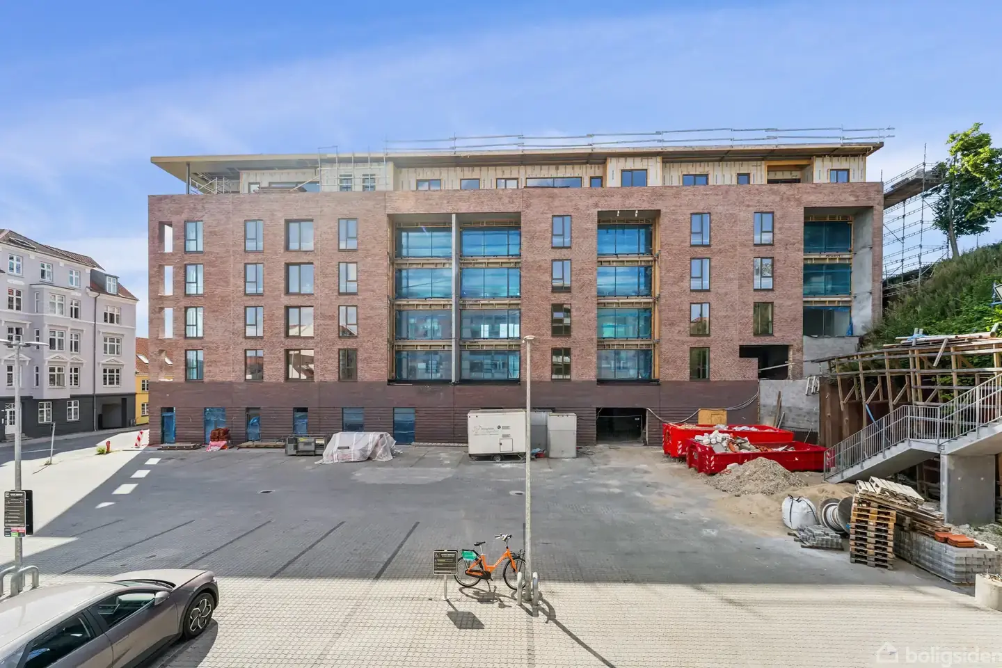 Det er 2. etape af det samlede projekt "Skolegården" som dermed snart er helt færdig og danner en flot helhed lige midt i byen. Vi har startet salget på de øverste lejligheder. 3 penthouse lejligheder på 5. sal. 5 lejligheder på 4. sal som vender ind mod parkeringspladsen, vinkelret på Markedsgade, samt de 3 øverste lejligheder på 3. sal ud mod Markedsgade. Randers Teater, Ridehuset og Værket danner baggrunden og hertil har man direkte adgang. Byggeriet opføres med alle moderne faciliteter. Du f