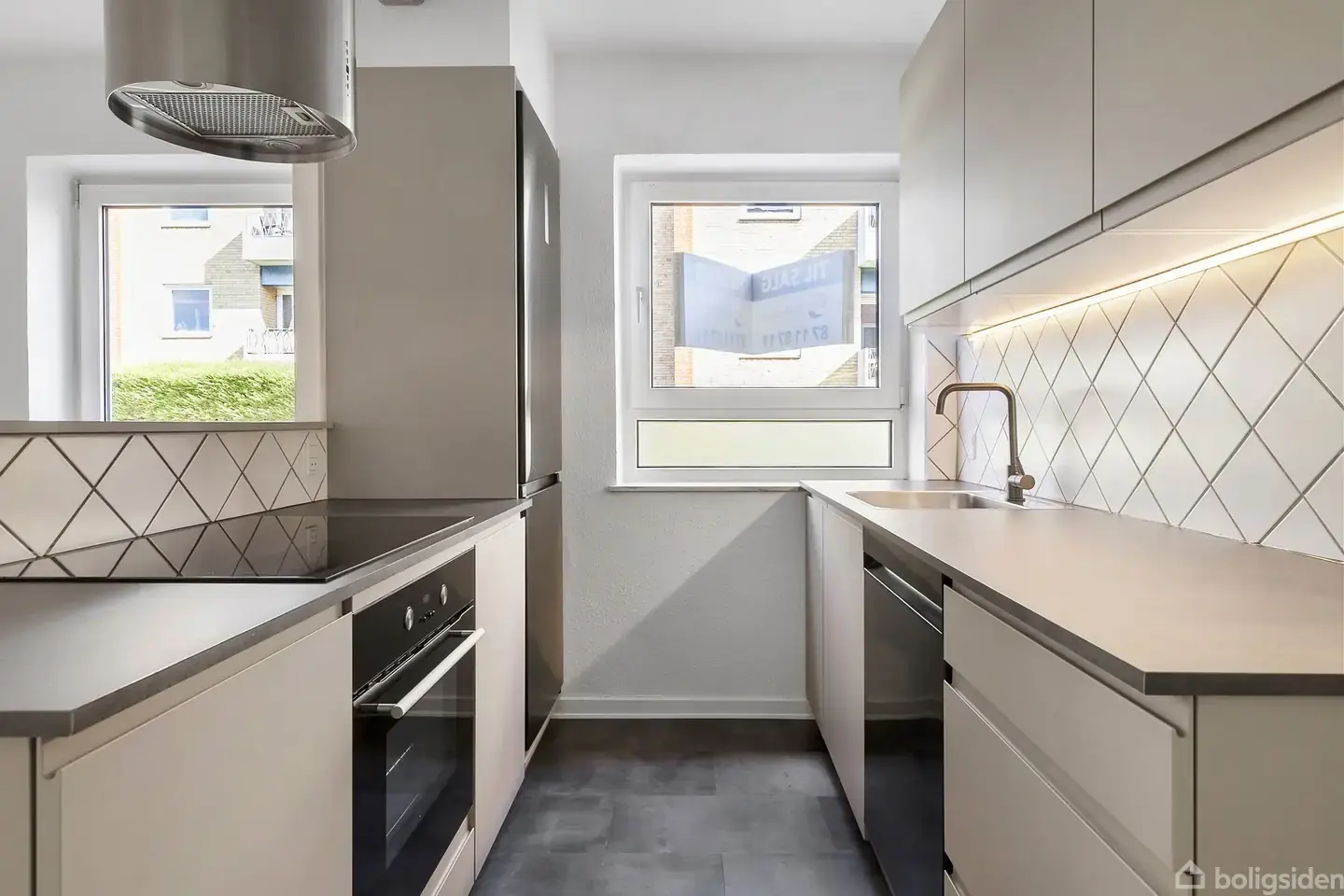 Åbent hus med tilmeldingskrav 2/2 - klik på billede - På en stille vej midt i Randers C ligger denne skønne og totalmoderniserede 3-værelses lejlighed på 68 m². Her får du en gennemført og indflytningsklar lejlighed med altan, det flotte køkken er opført i 2025 med grebsfri låge/skuffer. Moderniseret badeværelse kan man nyde godt af både gulvvarme og vindue. Lejligheden har en god indretning med køkkenalrum og stue, så der både er plads til spisebord og opholdsstue. Der har tidligere været værelse og kan nemt etableres igen. Fra stuen er der direkte udgang til en sydvendt altan, hvor solen kan nydes hele dagen. Køkkenet er udstyret med nye hvidevarer og er opført i et tidløst design med blandet andet frithængende emhætte, induktionskogeplader, opvaskemaskine m.m. Lejligheden er nymalet overalt med både vægge, skabe, lister og døre. Desuden er der nyt Timberman vinylgulv i køkken. Gulvene er nyslebne og blevet lakeret. Nye stikkontakter, afbrydere, lampeudtag m.m. Nyt bademiljø. Alt sammen er sket i 2025 Beliggenheden er i top - du bor fredeligt, men alligevel midt i byen. Netto ligger lige ved siden af, og der er kort gåafstand til både daginstitutioner, skoler og flere uddannelsesinstitutioner. En oplagt beliggenhed for både unge, studerende og par, som ønsker at være tæt på det hele. Ejerforeningen er veldrevet og præget af et godt naboskab med søde og hjælpsomme beboere. Her er både vaske- og tørrerum, cykelkælder, kælderrum og dørtelefon, som alt sammen bidrager til en tryg og velfungerende hverdag. Til ejendommen hører en p-kælder, hvor du har mulighed for at leje en fast plads. Når du køber en bolig gennem EDC, har du mulighed for at få en gratis flytteforsikring. Ønsker du denne, skal du sende en mail med "Ja tak" til [email protected]