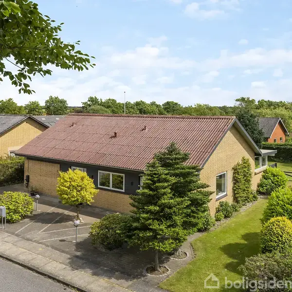 Velkommen til Markvænget 7 – en indflytningsklar og velholdt villa beliggende i et fredeligt og børnevenligt kvarter i Aulum. Her får I en bolig med god plads, dejlig have og praktiske løsninger til både hverdag og fritid.Villaen fremstår solidt og velholdt med gule mursten og et klassisk eternittag. Forhaven er flot anlagt med velplejede buske og træer, og den brede indkørsel fører op til carporten med tilhørende værksted og skur – ideelt til både opbevaring og gør-det-selv-projekter.Indenfor b