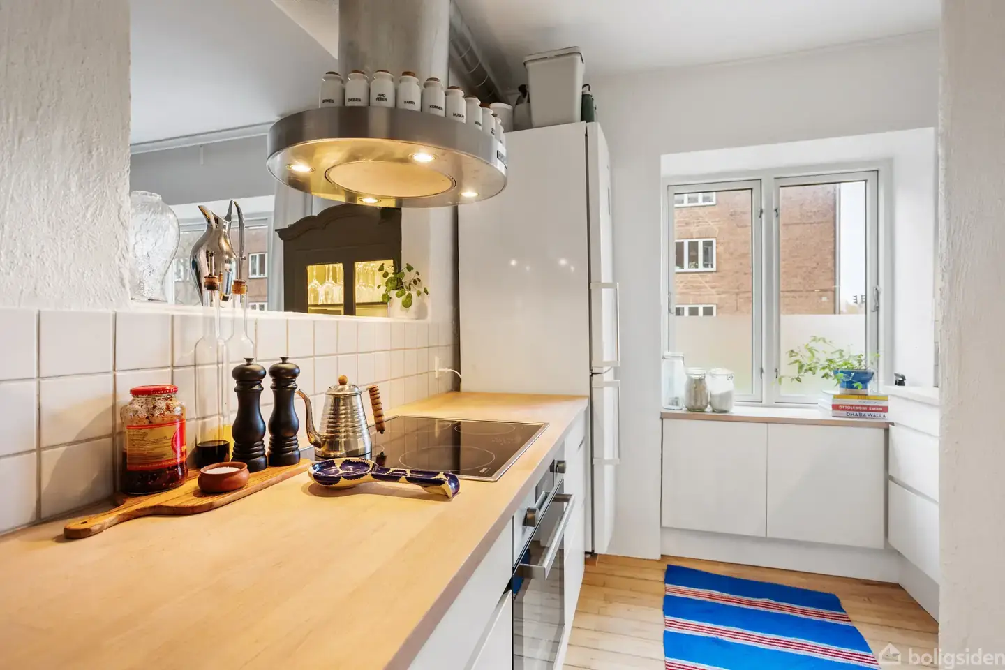Velkommen indenfor i en charmerende og veldisponeret toværelses lejlighed, der emmer af atmosfære og gode løsninger. Her træder du ind i en lys entré med plads til overtøj og sko, hvorfra boligens rum fordeler sig på overskuelig vis.Køkkenet fremstår både funktionelt og hyggeligt med fine materialer, god skabsplads og et naturligt arbejdsflow. De lyse elementer og træbordpladen giver rummet et varmt og imødekommende udtryk, og her er rig mulighed for at udfolde sig i hverdagen.Stuen er rummelig