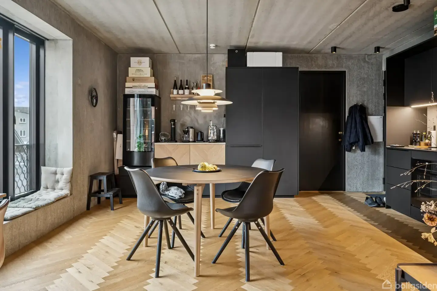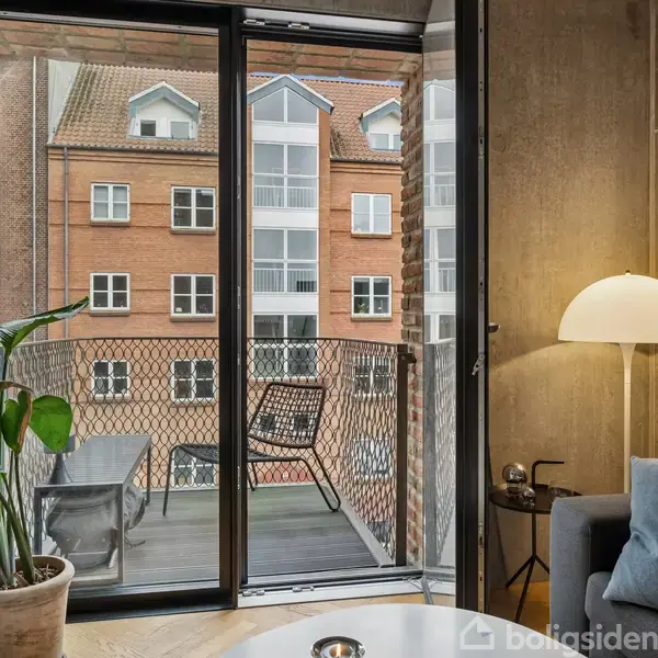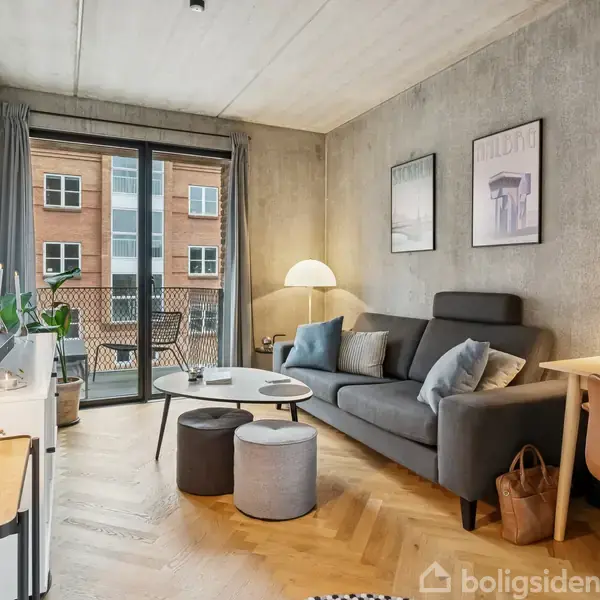 Velkommen til denne unikke og indbydende ejerlejlighed, som er beliggende på 2. sal i en smuk ejendom på den eftertragtede Marselisborg Allé. Her får du en bolig, hvor materialevalg, beliggenhed og stemning går op i en højere enhed.Lejligheden byder på en skøn altan med udsigt over området og et råt, moderne udtryk med synlige betonvægge. De massive sildebensgulve i egetræ med gulvvarme giver boligen et eksklusivt og stilrent præg. Det åbne køkken-alrum rummer både plads til spisebord og sofa, h