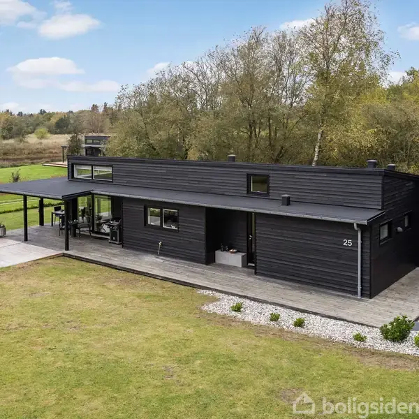 Åbent hus med tilmeldingskrav 3/2 - klik på billede - Drømmer du om et sted, hvor ro, natur og luksus går hånd i hånd? Hvor du kan trække dig tilbage, lade skuldrene sænke sig og bare nyde livet? Så er Marthasvej 25 i Trend det helt rette sommerhus for jer. Sommerhuset er opført i 2020 i førsteklasses materialer af det lokale kvalitetsbyggefirma Granly. Her er der ikke gået på kompromis med hverken komfort eller plads – de tre store værelser og de to rummelige badeværelser skaber en sjælden følelse af luft og velvære. Husets hjerte er det store køkken-alrum og den lyse stue, hvor store vinduespartier trækker naturen helt indenfor. Herfra er der udgang til en skøn træterrasse, der følger solen hele dagen og indbyder til både morgenkaffe og lange sommeraftener. Boligen opvarmes effektivt med en luft-til-luft varmepumpe, og der er elgulvvarme i begge badeværelser samt i entréen – perfekt til helårsbrug. I værelsesafdelingen finder du en praktisk hems, som børnene vil elske, eller som kan bruges til ekstra opbevaring eller sovepladser. Derudover rummer ejendommen et indbygget, frostfrit udhus med masser af anvendelsesmuligheder samt en carport med integreret redskabsrum. Beliggenheden? Svær at slå. Trend er et attraktivt og eftertragtet sommerhusområde i rivende udvikling. Her får du en sjælden kombination af smuk natur, hyggeligt miljø og masser af aktiviteter. Sommerhuset ligger i 2. række til en idyllisk sø, tæt på vandet og helt op ad områdets mange naturskønne stisystemer. Fra Trend er der kort afstand til både Himmerland Golf & Spa Resort og den charmerende havneby Løgstør. På stranden er der et livligt miljø med vandsport på blæsende dage – et stort plus for både aktive sjæle og dem, der bare nyder stemningen.