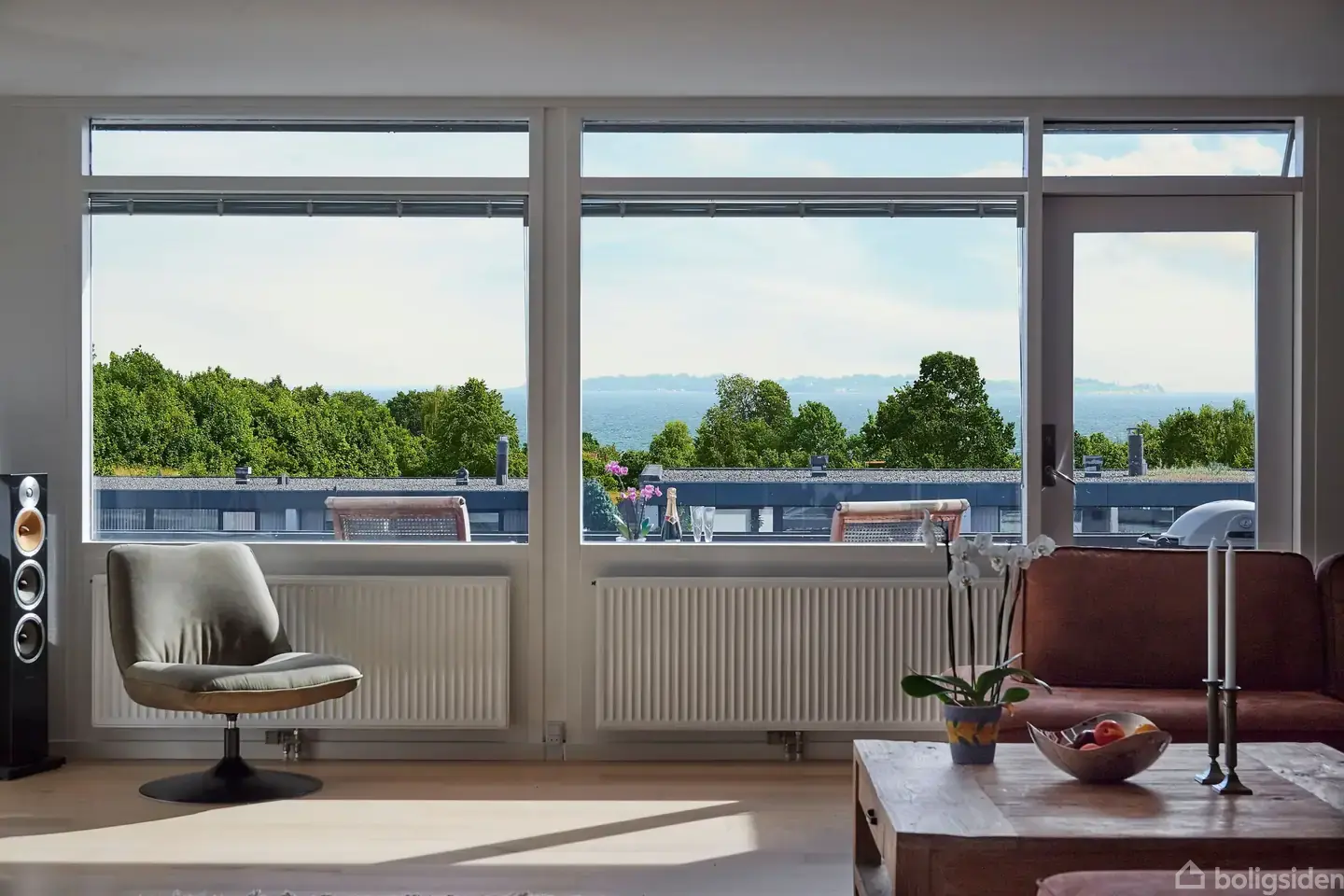 I det attraktive og fredelige boligområde "Masten" i Snekkersten udbydes nu et af bebyggelsens bedst indrettede rækkehuse. Huset er et skråningshus med flot udsigt over de grønne fællesarealer, Øresund og Egebæksvang Skov. Med indgang på husets nederste etage og en planløsning fordelt over tre niveauer, får man her en funktionel og fleksibel bolig med plads til alt fra 2 til mange beboere. Boligen er istandsat/renoveret indenfor de seneste par år. Indretningen byder pt. på 3 værelser, men kan let indrettes med 2 ekstra værelser, hvis der er behov for det. Der er indgang gennem carport og udhus, til gårdhave med masser af sol. Herfra indgang til rummelig entré med faste skabe. Ligeledes med udgang til gårdhaven, stort værelse, med tilhørende brusebadeværelse. Endvidere rummeligt trapperum, bryggers og stort depotrum. En etage op er der et stort lækkert køkken/alrum, med udgang til gårdhave med eftermiddags og aftensol. Afdeling med 2 værelser en-suite, som kan deles op, hvis nødvendigt. Hertil endnu et brusebadeværelse. På sydsiden er der fra værelserne udgang til altan i hele ejendommens bredde. På øverste etage er der en stor stue med nyere brændeovn, i hele etagens størrelse. Herfra er der fantastisk udsigt over området, Øresund og Egebæksvang skov. På udsigtssiden er der endnu en skøn altan, med god plads til bor og stole, så udsigten kan nydes i fulde drag. Huset har minimal udvendig vedligeholdelse og egner sig særligt godt til den aktive familie, som prioriterer fritid frem for havearbejde. Bebyggelsen er et lukket, grønt område med gode fællesfaciliteter, herunder fælleshus og mulighed for tennis. Direkte adgang til stisystem, der fører sikkert til skole, institutioner, idrætsanlæg, indkøb og Snekkersten Station med nem adgang til både Hillerød og København. Der er 7 minutters gang til stationen og 15 minutters gang til Snekkersten Havn og strand.