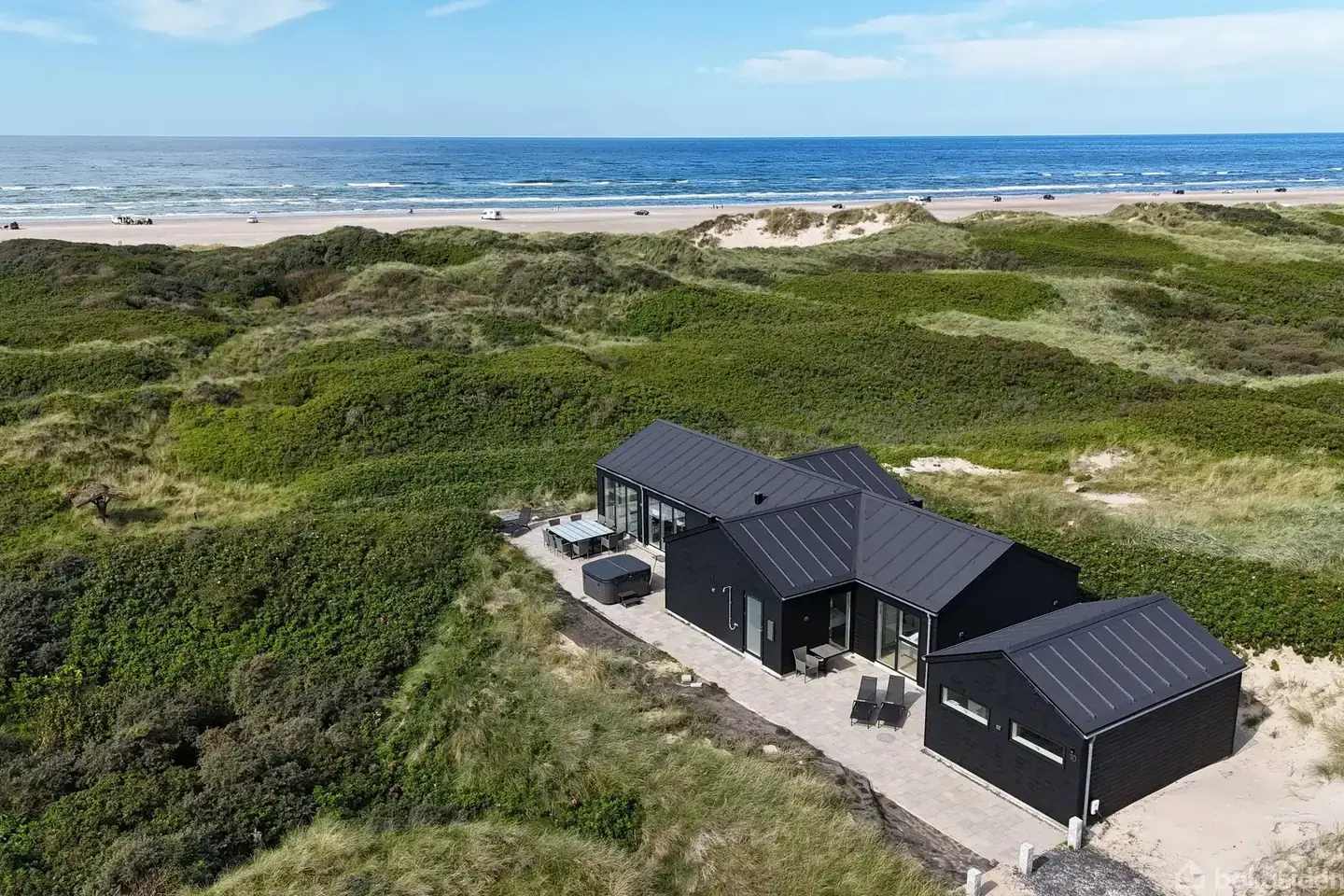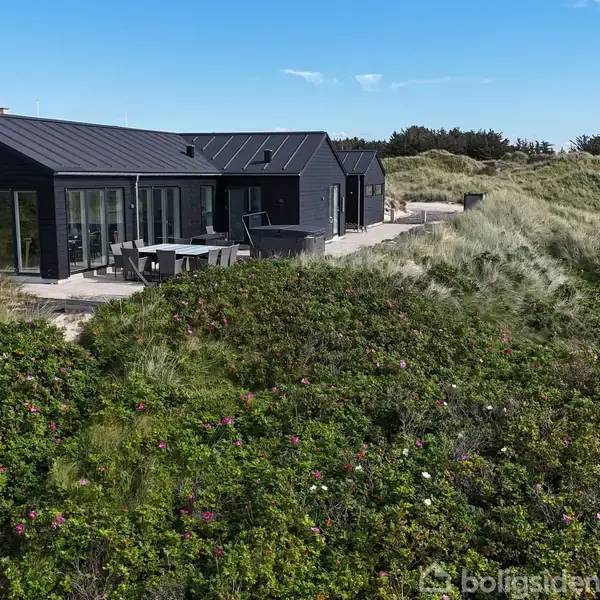 Dette luksuriøse sommerhus ved Grønhøj Strand tilbyder en enestående kombination af moderne komfort og naturskønne omgivelser, blot få minutter fra en af Danmarks smukkeste strande. Med privat sti direkte til vandet og et betagende havkig kan I nyde roen og skønheden ved kysten hver dag. Sommerhuset er indrettet til perfektion med fokus på luksus og kvalitet. Den store, delvist lukkede terrasse er et fantastisk samlingspunkt, hvor I kan nyde solen i de komfortable havemøbler eller tilberede måltider på grillen i de lange sommeraftener. Et udendørs spabad på terrassen giver jer mulighed for at slappe af under åben himmel, omgivet af de naturskønne omgivelser. Der er desuden en praktisk udendørs bruser, så I kan skylle sandet af efter en tur på stranden. Indvendigt imponerer sommerhuset med et stilfuldt og moderne design, der oser af elegance. Store vinduespartier lukker masser af lys ind og forbinder de smagfuldt indrettede rum med den smukke natur udenfor. Gulvvarme i både opholdsrum og soveværelser sikrer en behagelig atmosfære året rundt, og de fem soveværelser er indrettet med kvalitetssenge, som indbyder til afslapning og hvile. Et særligt højdepunkt er det 30 m2 store aktivitetsrum, der giver rig mulighed for underholdning med poolbord og dart. Her kan familien samles til sjove og hyggelige stunder i komfortable omgivelser med gulvvarme. Med en dedikeret elbil oplader er sommerhuset også fremtidssikret og bæredygtigt, hvilket gør det nemt og bekvemt for ejere og gæster med el- eller hybridbiler. Dette sommerhus er det ideelle valg for dem, der søger en eksklusiv fritidsbolig med fantastiske faciliteter og en førsteklasses beliggenhed ved havet. Her kan I skabe uforglemmelige minder i luksuriøse og naturskønne rammer.