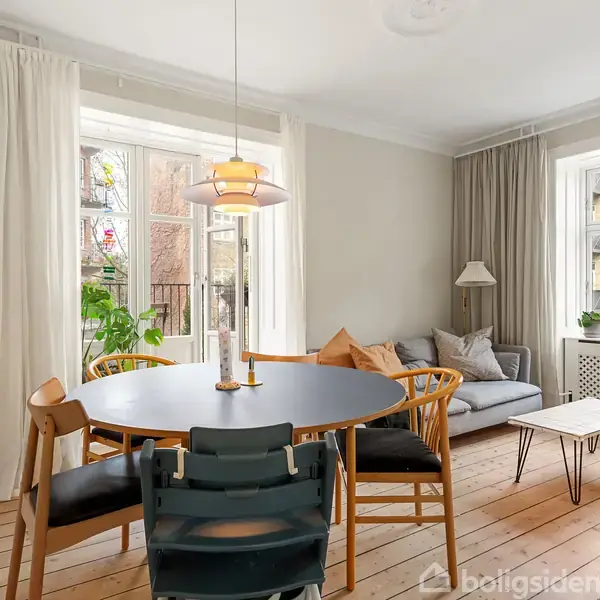 Velkommen til Mathildevej 15, 1. tv, en lejlighed, der kombinerer lyse rum, en skøn altan og en stemningsfuld og charmerende atmosfære midt i et af byens mest eftertragtede kvarterer. Indretningen fremstår harmonisk, og boligen rummer flere gode rum, der passer perfekt til parret eller den lille familie. Når du træder ind i stuen mærker du hurtigt at dette er samlingspunktet, med plads til både spisebord og sofa. De store vinduespartier giver et flot kig mod gaden og åbner ud til altanen, som f