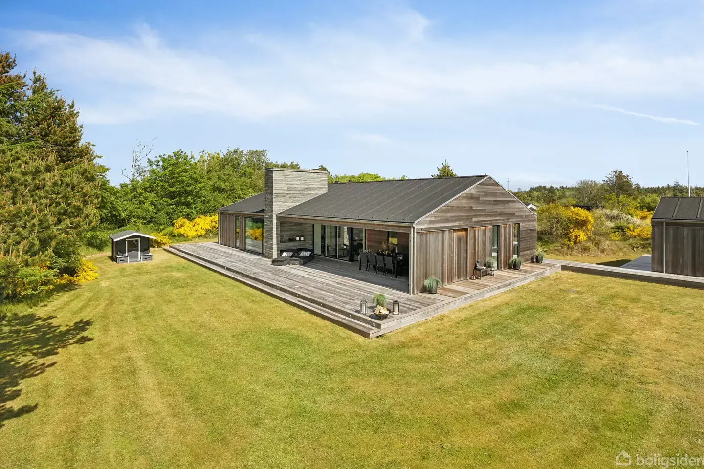 Eksklusivt sommerhus i særklasse – arkitekttegnet af N+P og opført med kompromisløs kvalitet!Velkommen til et unikt og kompromisløst sommerhus, hvor æstetik, funktionalitet og materialer fra øverste hylde går op i en højere enhed. Huset er tegnet af Aalborg virksomheden N+P Arkitektur og opført af det kvalitetsbevidste byggefirma Keld og Johs. – et samarbejde, der har resulteret i et sommerhus, der både imponerer og indbyder. Med sine 164 m² bolig samt 15 m² hems og en tilhørende garage-/udhusby