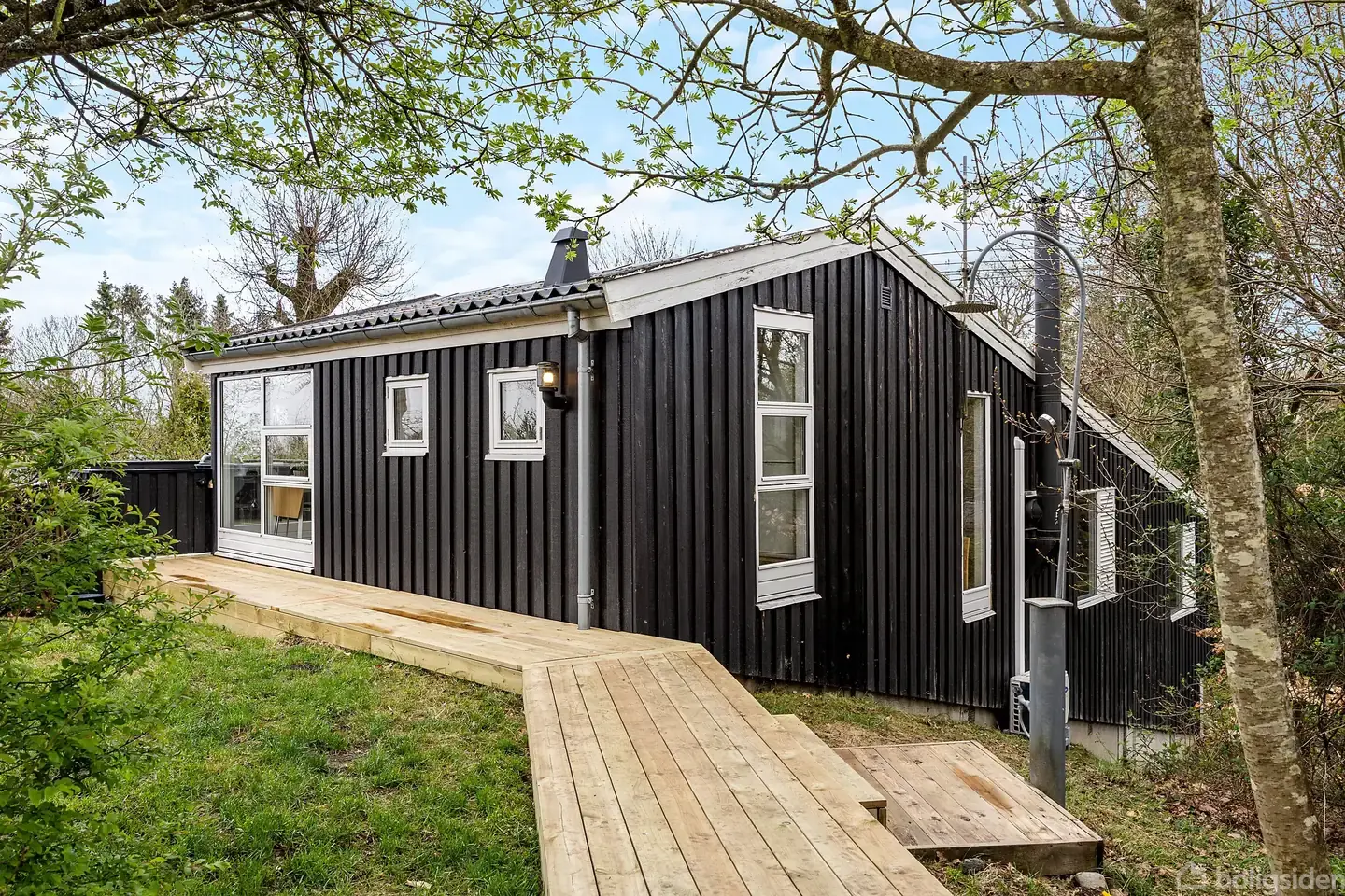 Højtbeliggende sommerhus med havudsigt!Velkommen til Mejløvej 6 – et skønt og charmerende sommerhus beliggende for enden af en rolig stikvej i det attraktive sommerhusområde Bønnerup Strand. Her får du en fantastisk beliggenhed med højt placeret grund og en skøn udsigt til Kattegat, som kan nydes fra både huset og den nye, store træterrasse.Huset byder på 75 veldisponerede kvadratmeter i forskudte plan, som skaber en hyggelig og levende rumfornemmelse. Du bydes velkommen i en lys og præsentabel
