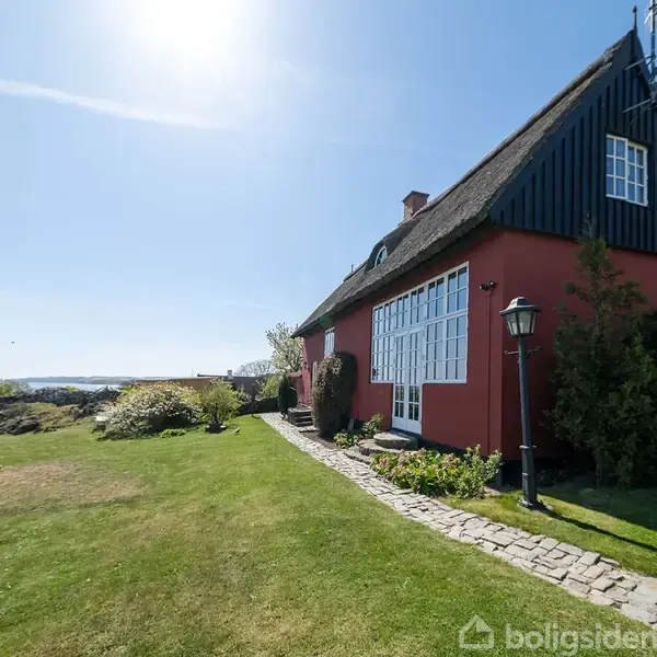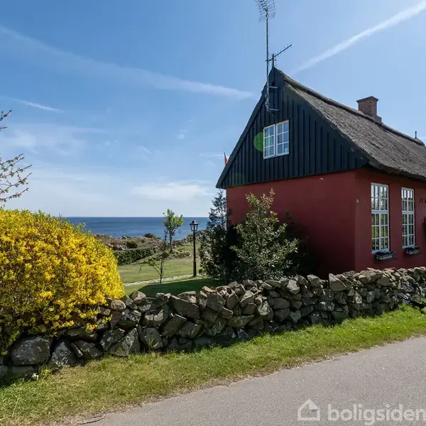 KUNSTNERSOMMERHUSET MANGE HAR DRØMT OM..... Der findes huse, som bliver siddende i hukommelsen længe efter, man har passeret dem. Huse, som kalder på én og med sin blotte fremtoning sætter en lavine af associationer i gang - alle omhandlende drømmen om den allerbedste danske sommerdag. Melsted Langgade 34 er ét af de huse. Med sin placering højt hævet over klipperne mellem Melsted og Gudhjem har sommerhuset i over et århundrede været et pejlemærke for alle, der færdes på denne strækning. Oprindeligt opført i 1923 på bestilling af kunstneren Jais Nielsen og tegnet af arkitekten Ivar Bendtsen, har sommerhuset i fire årtier dannet ramme om et liv i skabelse og skønhed fra sin herres hånd. Og det mærkes. I lyset, i materialerne, i roen. Fra vejen løfter man blikket op mod det stråtækte hus med de karakteristiske, sprossede vinduer – nogle så store, at det føles som om havet selv står i døråbningen. Inde folder huset sig ud i forskudte plan, med fire en halv meter til loftet og gamle bræddelofter, der understreger et overskud af ressourcer på så mange planer. En stor, hvid, svensk porcelænsbrændeovn står som et roligt midtpunkt og spejler udsigten mod havet. Her er æstetikken ikke konstrueret – den er iboende. Det ældre fyrretræskøkken er bevaret, og selvom tiden er gået, står det stadig som en lille omage gestus til håndværket. De nuværende rammer rummer to regulære soveværelser, det ene med balkon og udsigt helt ned til Svaneke. Men huset kalder også på nye idéer – og det er oplagt at tænke i flere værelser. Grunden er som et eventyr. En sand hemmelig have omgivet af stengærder og klippeformationer, der naturligt afgrænser og samtidig åbner sig mod horisonten. Hav, hav og atter hav - og så lidt den helt særlige bornholmske kystlinje. Overalt. Her er små solkroge, skjulte læ, et fint drivhus hvor en af havens figentræer vokser op af gavlen, et smukt udhus med sprossede vinduer – og en garage. Et ferskentræ trives uventet godt i dette kystnære paradis, hvor både mennesker og planter får lov at folde sig ud i fred. Det er ikke uden grund, at mange i årenes løb har drømt om netop dette sted. For det er ikke blot et sommerhus. Det er et stykke dansk arkitekturhistorie, et hjem for drømme, længsler og håb om at give sine nærmeste den allebedste danske sommer i byen over dem alle, og en uforlignelig placering, hvor alt synes at stå stille – bare et øjeblik længere.