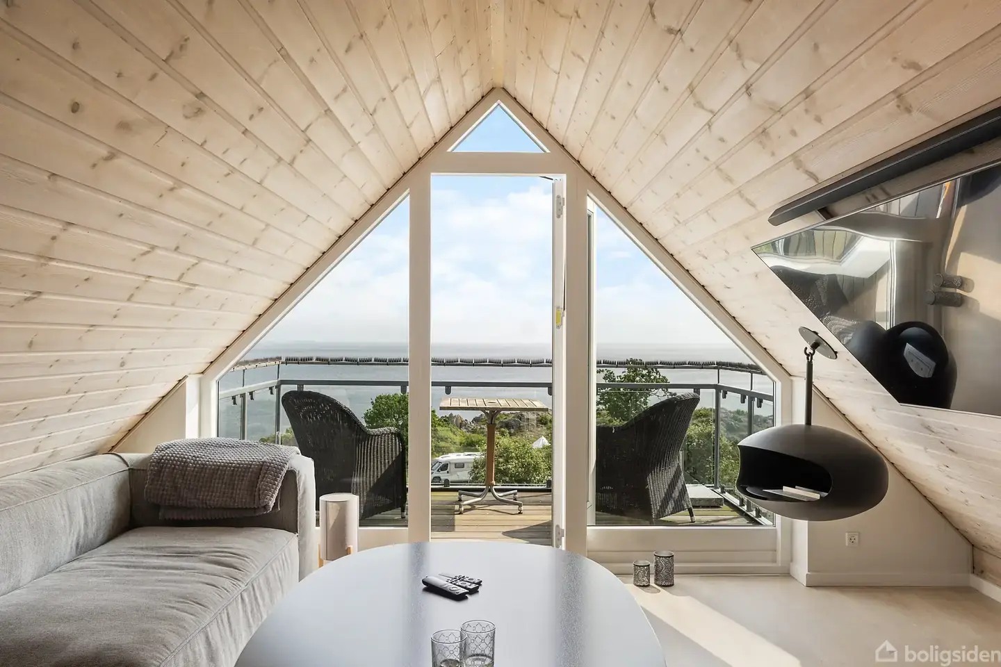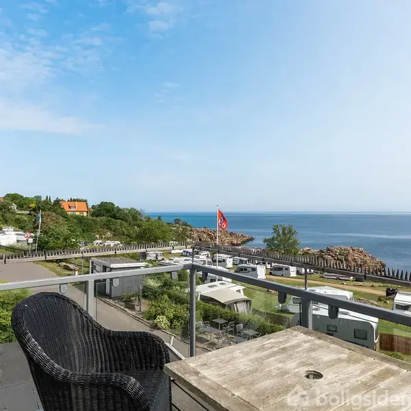Ferielejlighed med panoramaudsigt over Østersøen Feriestemningen sætter for alvor ind i Gudhjem, hvor denne ferielejlighed ligger med åben udsigt over Østersøen. Lejligheden placerer sig øverst i ejendommen og har alt det, man har brug for, når kalenderen er tom og friheden bare skal nydes. Lejligheden tilgås via den udendørs trappe med en lille svalegang, hvor glasdøren leder direkte ind i fritidsboligens indre. Entréen med bryggersfaciliteter drejer om hjørnet og ledsages af masser af skabe