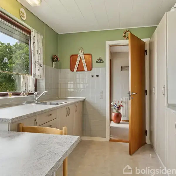 Etplansvilla med muligheder i Vestbyen Denne etplansvilla i et dejligt område i Viborgs vestlige bydel fremstår exceptionelt velholdt og i god stand. Alligevel vil der også være rig mulighed for at modernisere rammerne og udtrykket. Planløsningen er helt ideel med tre værelser, et badeværelse, et stort bryggers og et køkken i forbindelse med stuen, og beliggenheden tilgodeser jeres travle hverdag med kort afstand til alle fornødenheder. Selvom huset er i rigtig fin stand, så er det helt oplagt