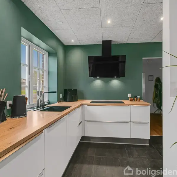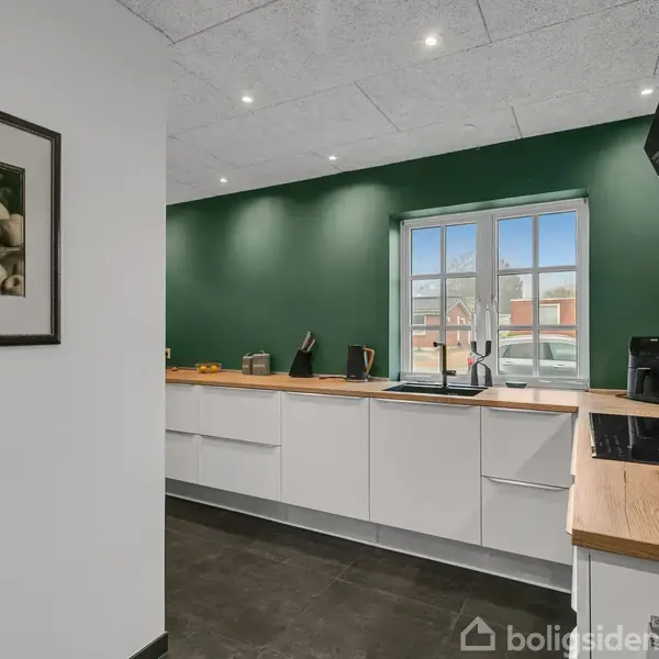 Nu tilbydes denne pænt renoverede 1 plans villa med built-up tag på 133 m2, med skøn solrig velanlagt have, hvor der er etableret en stor rund havedam.Huset er opført sten, som er vandskuret og har fået monteret nye vinduer og døre i huset. Indvendigt tilbydes følgende indretning : Flot nyt bryggers, med god plads til garderobe, skabsplads, vaskemaskine & tørretumbler, håndvask og i åben forbindelse til det flotte hvide køkken, der er pålagt et nydeligt klinkegulv, med gulvvarme og opsat flot troldtekt loft, med indbygningsspots og filsede vægge. Mellemgang med plads til garderobe, indbyggede skabe samt flot akustikpanel opsat samt troldtekt loft opsat.2 store lyse børneværelser, hvoraf det ene har skabsplads og det andet har udgang til haven, samt flot sprossedør isat til stuen, der er pålagt et pænt laminatgulv samt rustikloft opsat.Dejligt lyst soveværelse, med hel skabsvæg samt laminatgulv pålagt og et rustikloft opsat.Særdeles flot badeværelse, mørkt klinkegulv, med gulvvarme, stor sep. bruseniche, med glasvæg og flotte fliser opsat i brusenichen, pænt badeværelses miljøskab, med nedfældet håndvask, rustikloft med indbygningsspots.2 store stuer, hvoraf det ene bliver brugt til spisestue, med plads til stort spisebord og det andet som ligger i åben forbindelse til spisestuen og hvor der er indrettet hyggelig opholdsstue, med stort panorama vindue til den skønne have og havedammen. Der er desuden isat et flot combi ovenlys, som giver et særdeles godt lysindfald, til de 2 stuer.Fra stuen er der udgang til skøn havestue, hvor der er udgang til haven, samt til stort værksted.Hele villaen fremtræder i særdeles flot renoveret stand og sælges til overtagelse efter nærmere aftale.Har Du lyst til en uforpligtende fremvisning af denne spændende villa, da kontakt venligst vort kontor og aftal nærmere.