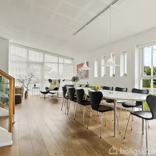 Velkommen til Mjødurtvej 5 – en eksklusiv og indbydende villa beliggende i det attraktive og familievenlige Højene i Hjørring. Her får I en boligoplevelse ud over det sædvanlige med hele 247 veludnyttede kvadratmeter fordelt på to plan, hvoraf de 82 m² i den lyse og moderne kælder er godkendt til beboelse. Ejendommen fremstår gennemført med en stilfuld arkitektur, store vinduespartier og et fantastisk lysindfald, der skaber en åben og indbydende atmosfære i alle rum. Villaen byder på fire rumme