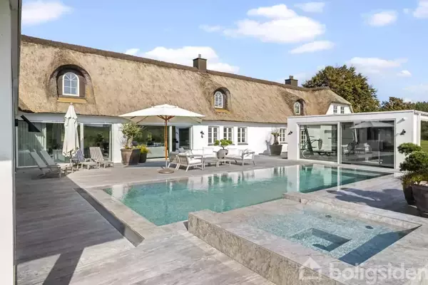 Arkitekttegnet liebhaverejendom med mere end 1.000 etagemeter• Stor stue og spisestue med kig ud til pool og udendørsarealer i midterfløj. Dinesen egeplanker, indbygget surroundsystem, fjernstyret gaspejs og al teknik gemt væk bag ekstra væg. • Smagfuldt køkken med gulvvarme, plankegulve, gulvhøjtalere og alle hårde hvidevarer i bedste kvalitet fra Liebherr og Miele. • I stueetagen ligger masterbeedroom med walk-in-closet samt eget badeværelse med gulvvarme, to brusere samt damp- og spabad. • S