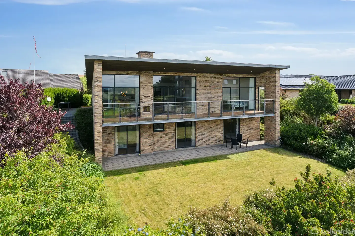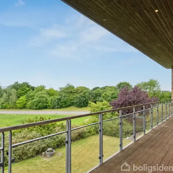 I 2006 blev denne villa opført på en skrånende grund i udkanten af Viborg. Netop placeringen på skråningen medfører en sublim udsigt over den fredede natur, som ejendommen ligger lige ved. Kvalitet var det helt store fokus under tilblivelsen af hjemmet, der således er udført i Petersen Tegl samt har zinkbeklædte udhæng og døre og vinduer i alu. Haven er holdt minimalistisk, hvilket giver den omgivende natur lov til at spille hovedrollen, og man har et særligt dragende udsyn fra altanen.Et veludf