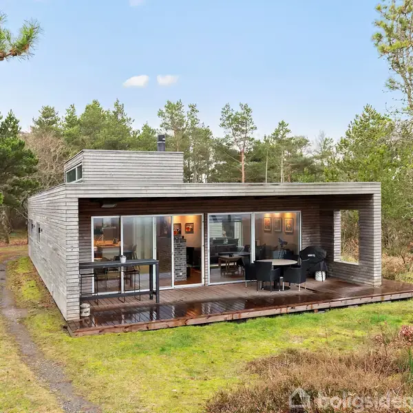 Smukt kvalitetssommerhus beliggende på en stor, naturskøn grund i første række ved Fjellerup Strand – med havet som nærmeste nabo. Husets flotte arkitektur er skabt med fokus på lys, udsigt og høj komfort, hvilket mærkes overalt. Sommerhuset byder på en særdeles hyggelig stue med et fantastisk lysindfald fra ovenlysvinduerne og en imponerende udsigt over havet. Herfra er der direkte adgang til den integrerede terrasse, hvor solnedgangen over Kattegat kan nydes i rolige og uforstyrrede omgivelser. Stuen ligger i åben forbindelse med køkkenet, som ligeledes byder på havudsigt. Et stort skydedørsparti giver adgang til en dejlig, lukket terrasse, og selv her kan udsigten nydes gennem stuens store vinduespartier. Huset rummer desuden tre gode værelser samt et badeværelse med bruseniche, spabad og gulvvarme – perfekt til afslapning året rundt. En helt ny træterrasse løber omkring størstedelen af huset og forbinder de to anneksbygninger. Det ene anneks er indrettet til overnatning, mens det andet fungerer som praktisk bryggers.
