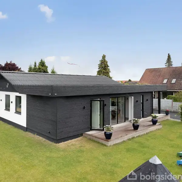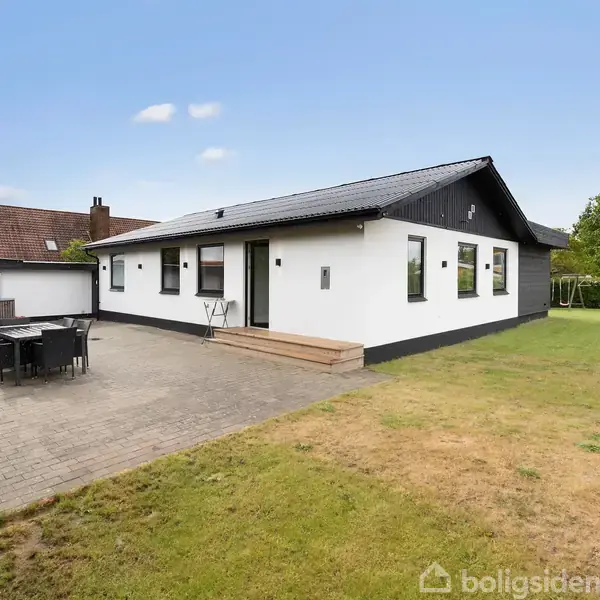 Åbent hus med tilmeldingskrav 4/2 - klik på billede - Velkommen indenfor i denne totalrenoverede villa, som byder på 157 m² moderne boligareal og en grund på hele 880 m². Med sine 5 rummelige værelser er boligen ideel til den pladskrævende familie, der ønsker en indflytningsklar bolig med stil og funktionalitet. Når du træder ind i villaen, bliver du mødt af en indbydende entré, hvor du til venstre finder et gæstetoilet. Når du går videre ind i villaen kommer husets kerne, som er det store og lyse køkken-alrum, som ligger i åben forbindelse med stuen - perfekt til samvær med både familie og gæster. Fra stuen er der desuden udgang gennem et stort vinduesparti til den lukkede have. Køkkenet fremstår moderne og funktionelt med god bordplads og direkte adgang til bryggerset. Yderligere finder du 5 rigtig gode værelser, hvor der er rig mulighed for opbevaring, hobbyrum eller plads til den store familie. Villaen opvarmes med fjernvarme og har gulvvarme igennem hele huset. Alle materialer og løsninger er valgt med omtanke og kvalitet for øje. Udendørs venter en nyanlagt træterrasse, som vender ideelt i forhold til solen og indbyder til afslapning og hyggelige sommeraftener. Den store have giver masser af plads til leg, boldspil og udeliv - og med den brede indkørsel er der rigelig plads til både bil, trailer og gæsters køretøjer. Lading er en fredelig og velfungerende landsby i Favrskov Kommune - beliggende blot ca. 20 minutters kørsel fra Aarhus. Her bor du i rolige omgivelser med åbne marker, skovområder og kort afstand til den naturskønne Lading Sø - et populært udflugtsmål for både børnefamilier og naturelskere. Byen har et godt lokalsamfund og kort afstand til indkøb, skole og daginstitutioner herunder børnehuset Lærkereden med både vuggestue og børnehave. Du finder desuden skolebus til skolerne i Hammel, som kun ligger 12 minutter væk og motorvejsnettet er let tilgængeligt, hvilket gør hverdagen nem for pendlere. Møllebakken 21 er et hjem, hvor både kvalitet, komfort og beliggenhed går op i en højere enhed. Her får du plads til familieliv, nærhed til naturen og en moderne bolig i en og samme pakke. Kontakt os allerede i dag for en fremvisning - denne bolig skal opleves!