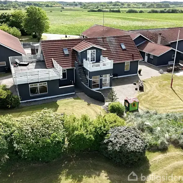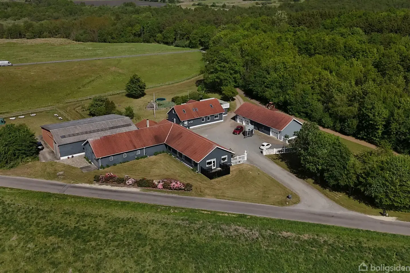 Nu har du muligheden for at erhverve en sjældent udbudt ejendom, som kan rumme både dyrehold, en stor familie og samtidig velegnet til flergenerationers ejendom. Møllebjergvej 8 er en rummelig landejendom med en skøn beliggenhed. Ejendommen er ideel til den store familie eller som kombineret bolig- og erhvervsejendom. Hovedhuset rummer 230 m², suppleret af to selvstændige lejligheder på henholdsvis 80 og 140 m² i en sekundær bygning. Den lille lejlighed fungerer aktuelt som beboelse eller lejeobjekt, mens den større lejlighed anvendes som AirBnB med en god årlig lejeindtægt (i 2024 på ca 29.500 kr.). Denne lejlighed kan naturligvis også benyttes til hobbyformål, gildesal eller aktivitetsrum m.v. Ud over boligdelen byder ejendommen på flere funktionelle udhusbygninger: et selvstændigt fyrrum, vaskehus, dobbelt garage, lagerrum samt et stort værksted. Denne samling af bygninger giver gode muligheder for opbevaring, håndværk eller mindre erhvervsdrift. Til hestefaciliteter hører en stor højloftet stald med ti bokse, vaskeplads, sadelrum samt plads til hø og halm. Dertil kommer en ridebane med lys, der måler 60×20 meter, og en travbane på 600 meter med grus-/sandunderlag. To indrettede folde med indlagt vand gør det nemt at drive hestehold. Ejendommens jordareal udgør i alt 11 ha., hvoraf omkring 5 ha. ligger som græsfolde. Hertil kommer støtteberettigede arealer på 5,6 ha. med en årlig støtte på cirka 9.000-10.000 kr. En del af Boller Sø ligger også inden for grundens rammer, hvilket giver gode fiskemuligheder. Naturen byder desuden på varieret dyreliv – blandt andet ses rådyr på grunden. Opvarmning sker ved et nyere træpillefyr på 25 kW (installeret i 2024) samt et fastbrændselsfyr med en 3.000 liters akkumuleringstank fra 2023, som kører med integreret styring. I stuehuset er der gulvvarme med separat styring, mens 1. sal opvarmes med radiatorer. De to lejligheder opvarmes gennem gulvvarme suppleret med radiatorer i den lille lejlighed og elektriske radiatorer i den store. Et stort brændeskur på 60–70 m² følger med – inklusive et løbende lager af brænde. Vandanlæggene omfatter egen boring med rensningsanlæg samt eget tri-rensningsanlæg, hvilket betyder, at ejendommen ikke er bundet til kommunal vandafgift. Endvidere er der bredbånd til internet og TV, fordelt over tre lokale WiFi-installationer. Beliggenheden er praktisk og perfekt: Kun 1,5 km. til Hedegård Friskole og 4 km. til Give by, hvilket gør det nemt at kombinere landlig ro med adgang til skole og offentlig transport.