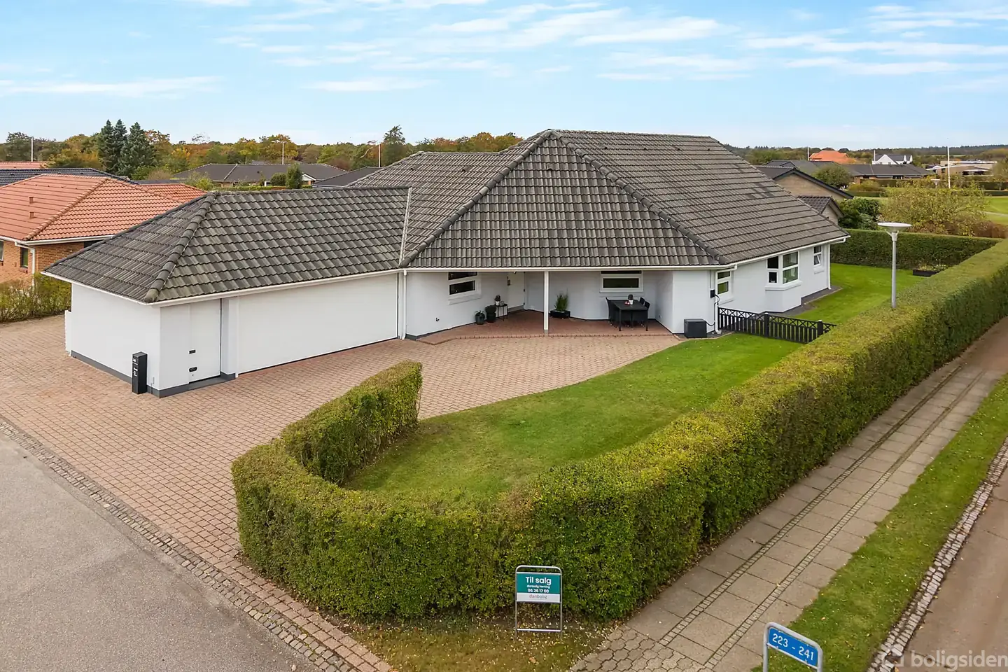Lækker stor etplansvilla, i det mest attraktive kvarter i Kibæk.Allerede ved ankomsten til Møllegaarden 241 bemærker man villaens indbydende udtryk og den flotte placering på grunden. En tætklippet hæk omkranser hjemmet og sikrer privatliv, mens den skønne have indrammer den rolige atmosfære og byder på masser af plads til både leg og afslapning. Her kan de grønne omgivelser nydes året rundt. Indenfor fortsætter den gode oplevelse, hvor en velgennemtænkt planløsning byder på både komfort og fun