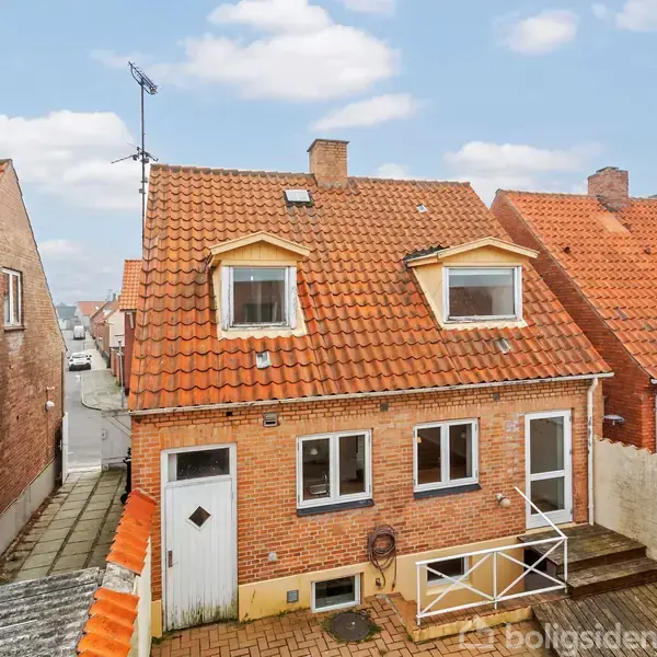 Møllegade ligger tæt på gågaden og Store Torv, med butikker, spisesteder og hyggeligt byliv - samt gåafstand til busforbindelser, færgehavn og den hyggelige bystrand ved Nørrekås Marina. Her ligger dette hus i den karakteristiske stil, som "bombehusene" alle er opført i - bygget efter bombardementerne af Rønne, og kendt for deres rummelighed, gode materialer, højloftede rum og facader i blanke mursten. Huset er særdeles solidt opført og senere er det bl.a. moderniseret med nye vinduer i stueetage, etableret åbent køkken/alrum og flere andre ting. Dog er der stadig fine muligheder for den fingernemme handymand m/k for at sætte sit eget præg på den indvendige del af huset. Huset indeholder: Lukket gænge til gårdhaven. Entré med trappeføring til 1. sal og til kælderen. Dejlig, lys opholdsstue med indbygget brændeovn - i åbent plan til køkken. Åbent spisekøkken med direkte udgang til terrasse og gårdhave. 1. sal: Repos. Toilet med håndvask. Værelse med kvist. Stort soveværelse med kvist. Kælder: Trapperum. Badeværelse med bruseniche, håndvask og w.c. Hobbyrum/værksted. Vaskerum med udgang til gården + montage for vaskemaskine. Hyggelig og solrig gårdhave med klinkebelægning, træterrasse samt udhus/redskabsrum.