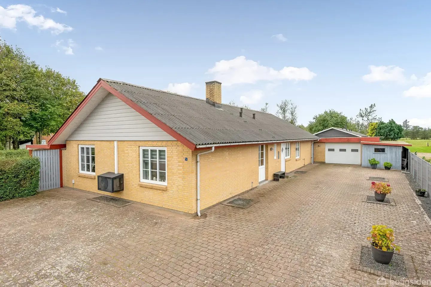 På Møllegade 5 finder du en velholdt bolig i gule sten med et malet eternittag og PVC-vinduer. Huset fremstår i pæn stand ude som inde og rummer blandt andet et moderniseret badeværelse med bruseniche samt et gæstetoilet i original udførelse. Boligen byder på fire gode værelser, samt en stor og lys stue med både brændeovn og luft-til-luft varmepumpe, der sikrer en behagelig varme året rundt. Fra stuen er der udgang til en hyggelig udestue, og i åben forbindelse ligger det lyse køkken, der skaber