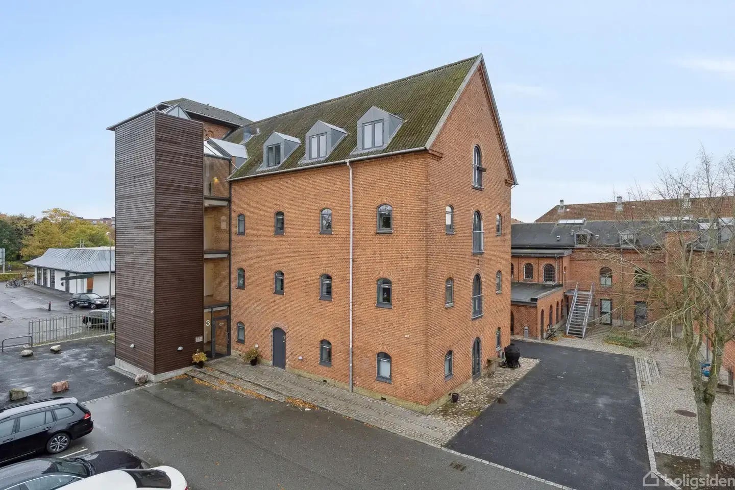 Her udbydes en attraktiv lejlighed i en af Roskildes mest historiske bebyggelser. Lejligheden ligger i Møllehusene, i den gamle spritfabrik, kun en kort gåtur fra Roskilde centrum. Boligen er en velindrettet 3-værelses lejlighed, fremstår i flot stand, ligger på 1. sal og har adgang via elevator. Boligen:Bebyggelsen stammer fra 1906 og er en del af den historiske spritfabrik, hvor blandt andet den ikoniske bitter Gammel Dansk blev udviklet. Fabrikken var en vigtig del af Roskildes industrihistorie og var en af de første bygninger i Danmark med elektrisk belysning. For lidt over 20 år siden blev der indrettet boliger i de gamle, historiske bygninger. Lejligheden er på 91 velindrettede kvadratmeter og fremstår i pæn stand med mange fine detaljer som fx flotte plankegulve og køkken med synlige mursten. Til lejligheden hører kælderrum og pæne fællesarealer med fælles parkering. Indretning:Man bydes velkommen i en flot opgang med elevator. Fra opgangen er der adgang til en møblerbar entré, der giver adgang til et pænt badeværelse med vaskesøjle og bruseniche. Den store, lyse stue er i åben forbindelse med køkkenet, som fremstår moderne med hvide elementer og en rustik, blotlagt murstensvæg, der skaber kontrast til det moderne udtryk. Stuen er så stor, at her er rigelig plads til både spise- og opholdsafdeling – du kan sågar indrette et lille ekstra værelse. Herudover rummer lejligheden to gode soveværelser. Området:Møllehusene har en central beliggenhed i Roskilde. Til byens hyggelige gågade, Skomagergade, er der kun ca. 1,2 km, hvilket giver nem adgang til caféer, butikker og kulturelle tilbud. Roskilde Station ligger omkring 1,5 km fra hoveddøren, hvilket gør det nemt for pendlere at komme til København og resten af Sjælland. I området findes også dagligvarebutikker, specialforretninger, Roskilde Hallerne og Roskilde Stadion. Naturskønne områder som Boserup Skov, Roskilde Fjord og Roskilde Havn er ligeledes inden for kort cykelafstand og giver gode muligheder for rekreation og udendørs aktiviteter.