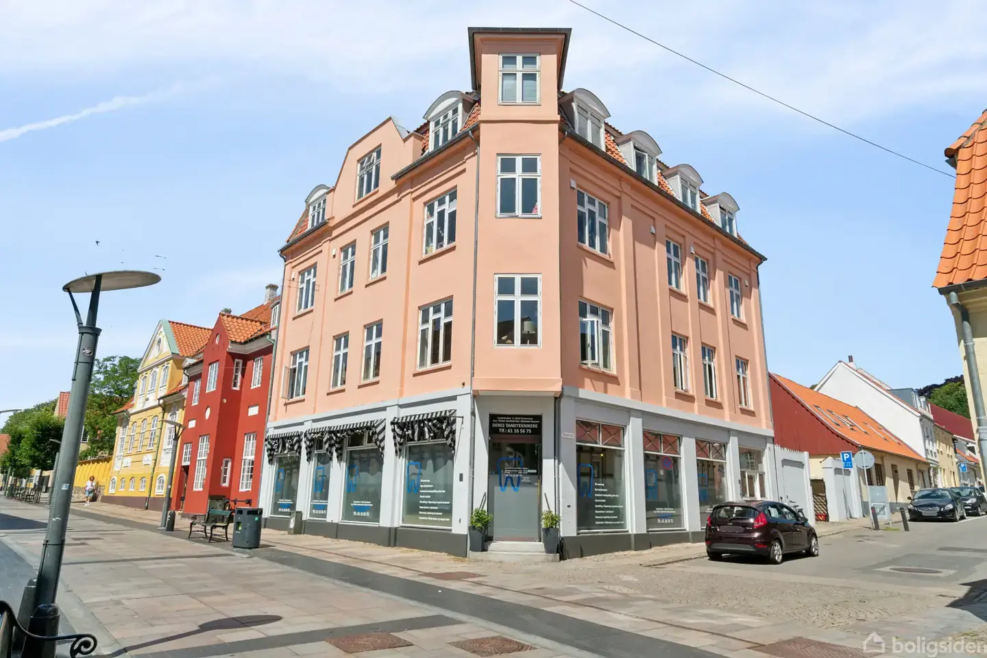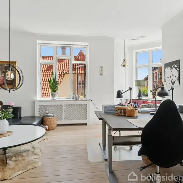 Moderne herskabslejlighed centralt i Kalundborg Midt i Kalundborgs pulserende byliv og med udsigt over byens tage finder I denne unikke herskabslejlighed, der kombinerer klassisk charme med udendørs oase og en beliggenhed, der bringer jer tæt på både natur, kultur og havneliv. Med sine 180 kvadratmeter, højt til loftet og smukke detaljer som stuk, høje paneler og originale plankegulve har I her en bolig med karakter og sjæl. Trods den centrale beliggenhed får I overraskende meget ro og privatliv