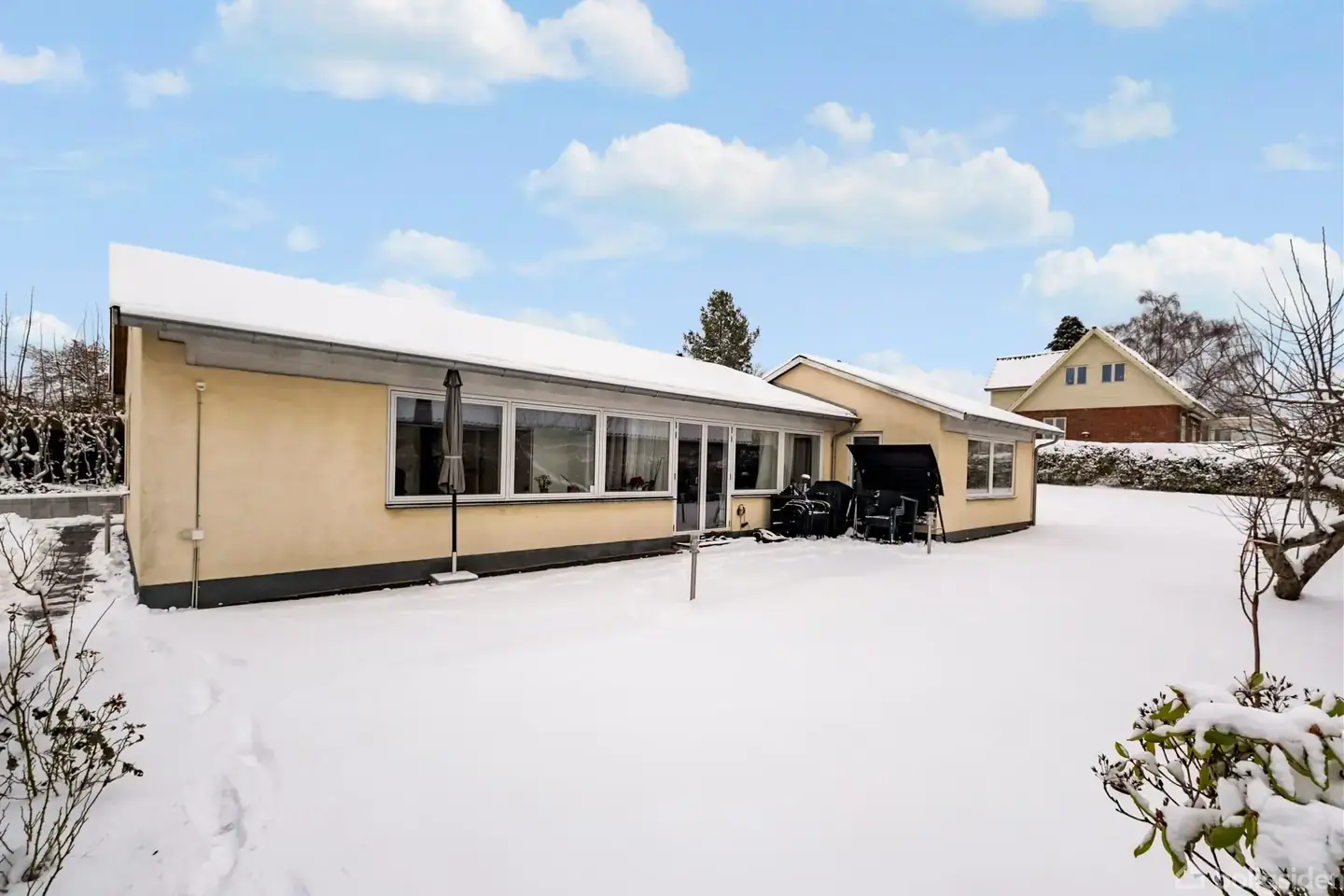 Åbent hus med tilmeldingskrav 8/2 - klik på billede - På Møllevænget 5 i Kongens Lyngby venter en indflytningsklar étplansvilla, der emmer af ro, lys og familievenlig komfort. Her bor du på en hyggelig villavej med kort afstand til offentlig transport, indkøb, gode skoler og institutioner – et område, hvor hverdagen glider let, og weekenderne får plads til nærvær. Boligen byder velkommen med højt til loftet og et dejligt lysindfald, der strømmer ind gennem de nyere vinduer og skaber en let og indbydende atmosfære i hele huset. Planløsningen er gennemtænkt og ideel til familielivet, hvor fællesrum og private zoner spiller harmonisk sammen. Husets hjerte er det flotte og stilrene køkken med gulvvarme i forlængelse af stuen med plads til både sofa- og spiseafdeling – et naturligt samlingspunkt, hvor madlavning og samtaler går hånd i hånd. Køkkenet har god arbejdsplads, tidløse materialer og direkte forbindelse til opholdsarealerne, så både hverdag og gæstebud får optimale rammer. Børneafdelingen rummer to store, lyse værelser samt eget badeværelse og giver mulighed for at etablere et tredje værelse efter behov. En tryg og praktisk afdeling, hvor børnene kan vokse, lege og finde ro. Forældreafdelingen er elegant adskilt og byder på et stort soveværelse med walk-in-closet og eget badeværelse – et privat frirum i hverdagen. Dertil kommer et ekstra værelse med egen ind- og udgang, ideelt som hjemmekontor eller gæsteværelse. Udenfor fortsætter de gode oplevelser. Grunden er skøn og ugeneret med dejlig terrasse, hvor solen kan nydes dagen lang, og plads til både leg og afslapning. Her finder du også et charmerende anneks, der kan bruges til hobby, opbevaring eller kreative udfoldelser. Den dobbelte holdeplads gør hverdagen nem, når familien skal af sted. Alt i alt en moderne villa i flot stand med masser af plads og en beliggenhed, der kombinerer natur, byliv og trygge rammer. Et hjem, der er klar til at danne rammen om næste kapitel for en ny familie.