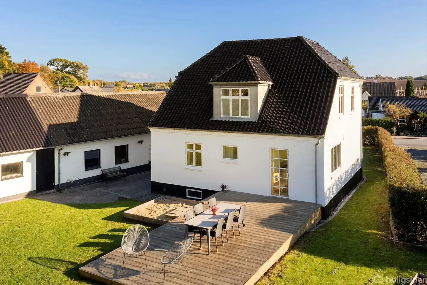 Her får du en charmerende Patriciervilla med sjæl, stil og masser af plads. Huset oser af charme med højt til loftet, synlige bjælker og en gennemført atmosfære. I stueplan bydes du velkommen i en rummelig entré med gæstetoilet. Det store køkken har direkte udgang til en skøn terrasse og adgang til både spisestue og opholdsstue – perfekt til familieliv og gæster. På 1. sal finder du et dejligt badeværelse, et stort soveværelse med synlige bjælker og egen altan, samt to gode værelser – det ene med hems, som børnene vil elske. Fra 1. salen er der flot udsigt over området, og haven er ugeneret med begrænset indkig fra naboer. Haslund byder på et stærkt fællesskab og en aktiv beboerforening med arrangementer som fastelavn, Skt. Hans, halloween, fællesspisning og Haslundløbet. Her er 2 legepladser, dagplejere, gode busforbindelser til Randers – inkl. ekstra afgange morgen og eftermiddag – og kort afstand til rideskole og indkøbsmuligheder i både Vorup, Paderup og langs Aarhusvej. Rolige og hjælpsomme naboer gør området ekstra attraktivt – her hjælper man fx gerne med hækken!