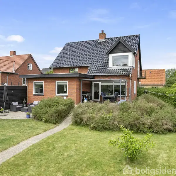 Charmerende villa med plads til hele familien centralt i Hjørring Velkommen til denne charmerende villa fra 1948, der byder på en indbydende atmosfære og masser af plads til hele familien. Med en veludnyttet størrelse på 197 kvadratmeter og fem rummelige værelser, er der mulighed for at indrette sig præcis, som man ønsker. Den åbne planløsning i stue og køkken skaber en lys og indbydende stemning, hvor man kan nyde hyggelige stunder med familie og venner.Køkkenet er funktionelt og elegant, med m