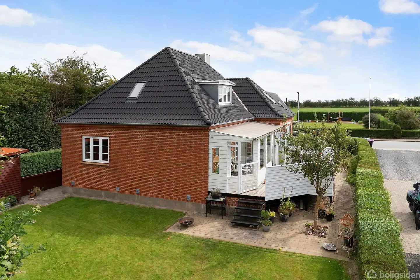 Åbent hus med tilmeldingskrav 3/2 - klik på billede - Her bliver du budt velkommen til en charmerende og indbydende villa, der straks indfanger følelsen af hjem. Huset danner de perfekte rammer for familien, der ønsker at slå rødder i et trygt og velfungerende lokalsamfund. Boligen præsenterer sig med en funktionel planløsning, hvor klassisk komfort møder moderniserede løsninger. Allerede i entréen bliver du ledt ind til et badeværelse og et køkken indrettet med tidløst og elegant inventar. Herfra åbner hjemmet sig mod de to stuer – spisestuen, der indbyder til gode middage, og opholdsstuen i delvis åben forbindelse, hvor der er plads til samvær og afslapning. Fra stuen er der udgang til en hyggelig udestue, hvor årstidernes skiften kan nydes i rolige omgivelser. I stueplan finder du også et rummeligt soveværelse. På førstesalen venter tre gode værelser, der giver masser af muligheder for både børneværelser, kontor eller hobbyrum. I kælderen får du et væld af anvendelsesmuligheder – her er både praktiske opbevaringsrum, fyrrum og et stort badeværelse med både bruseniche og badekar, som indbyder til afslapning. Fra udestuen kan du træde direkte ud på en hævet træterrasse, hvor de lange sommeraftener kan nydes, eller videre ned i haven, hvor endnu en terrasse giver plads til udeliv. Haven er anlagt, så den er nem at holde, men stadig grøn og indbydende. Til ejendommen hører en rummelig indkørsel samt en garage, hvor familiens biler let finder plads. Gabøl er en lille landsby i Sønderjylland, beliggende mellem Gram og Vojens. Byen er kendetegnet ved sit rolige landsbymiljø, de omkringliggende marker og åbne områder, som giver et smukt og landligt præg. Gabøl har et stærkt lokalsamfund med foreningsliv og gode naboskaber. Landsbyen ligger tæt på større byer, hvilket gør den attraktiv for familier, der ønsker ro og natur, men stadig vil have kort afstand til arbejdspladser, skoler og indkøb.