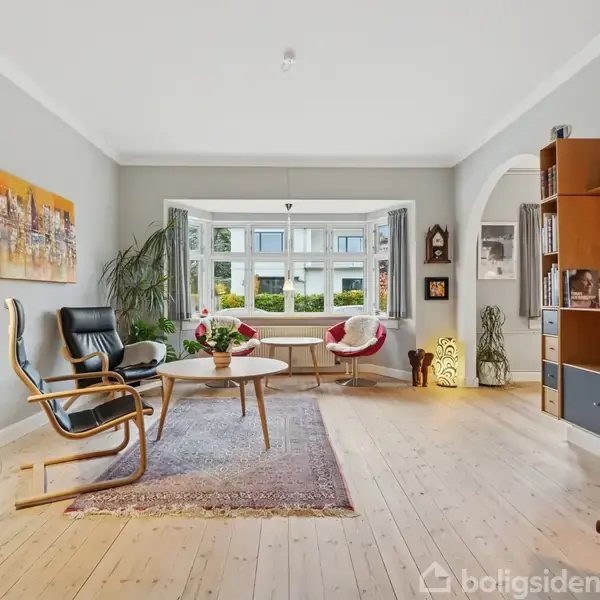 Velkommen til Moltkesvej 7 – en charmerende og rummelig villa på 149 m² fra 1936, placeret på en 456 m² grund i et roligt og attraktivt kvarter tæt på centrum. Her får du et hjem med sjæl, funktionalitet og mange gode kvadratmeter fordelt på flere niveauer – perfekt til familien, der ønsker bynær beliggenhed kombineret med trygge og grønne omgivelser.Allerede ved ankomst mærker man husets klassiske karakter med det markante gavltag, de symmetriske vinduer og den velholdte facade. Indenfor byder
