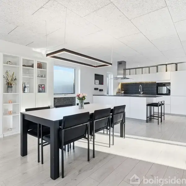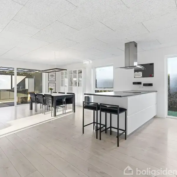 Moltrup Bygade 41 er en moderne og indbydende bolig opført i 2017, som byder på 148 veludnyttede kvadratmeter med gulvvarme i hele ejendommen. Boligen fremstår lys og behagelig med et gennemgående godt lysindfald, store vinduespartier og en akustik, der skaber en rolig og komfortabel hverdag. Planløsningen er særligt gennemtænkt med en klar opdeling mellem opholdsrum, forældreafdeling og børneafdeling, hvilket giver optimale rammer for familielivet. Husets hjerte er det åbne køkken-alrum, som ligger i naturlig forbindelse med spiseområdet og giver god plads til samvær i hverdagen. Herfra er der videre adgang til stuen, som er placeret mere tilbagetrukket og egner sig perfekt til afslapning og hyggelige aftener. Forældreafdelingen byder på et rummeligt soveværelse og giver en privat og rolig base i hverdagen. Børneafdelingen rummer to regulære værelser samlet omkring en fordelingsgang, så børnene får deres eget afsnit i huset. Boligen indeholder i alt to badeværelser, som er praktisk placeret i hjemmet, så både hverdag og gæster nemt kan tilgodeses. Derudover rummer boligen entré, bryggers og gode gangarealer, som binder hjemmet praktisk og funktionelt sammen. Fra opholdsrummene er der direkte udgang til en stor terrasse med overdækning og et attraktivt poolmiljø, hvor solen kan nydes det meste af dagen, og hvor udelivet bliver en naturlig forlængelse af boligen i sommerhalvåret. Den 1.379 kvadratmeter store grund giver god plads omkring huset til både leg, afslapning og ophold. Til ejendommen hører desuden en carport samt et fint isoleret værksted, som giver gode muligheder for hobby, opbevaring og praktiske gøremål. De sydvendte vinduer bidrager både til et flot lysindfald og ekstra varme på solrige vinterdage, hvilket sammen med den moderne opvarmningsform sikrer lave og fornuftige forbrugsudgifter. Samtidig er området kendetegnet ved et trygt og velfungerende naboskab med fælles arrangementer som sommerfest, Sankt Hans og juletræsfest. Beliggenheden er praktisk med kort afstand til E45 og Haderslev by, hvilket gør hverdagen nem for både pendlere og familier. Samlet set er Moltrup Bygade 41 en moderne bolig med høj komfort, en særdeles velfungerende planløsning og attraktive udearealer i et roligt og velfungerende lokalmiljø.