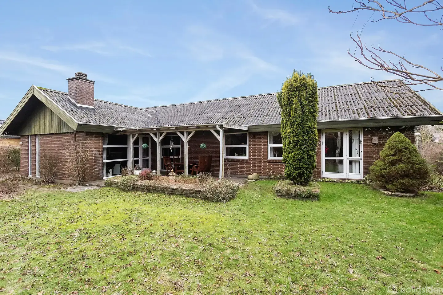 Denne 1-plans villa fra 1970’erne byder på 156 veludnyttede kvadratmeter med retropræg. Her er der tale om en bolig med god plads, en fornuftig planløsning og masser af muligheder for både den pladskrævende familie og dem, der ønsker alt samlet i ét plan. Vinduerne er udskiftet, hvilket bidrager til et bedre indeklima og et mere tidssvarende udtryk.Boligen indeholder fire værelser i forskellige størrelser, som kan anvendes til børneværelser, soveværelse, kontor eller hobbyrum – alt efter behov.