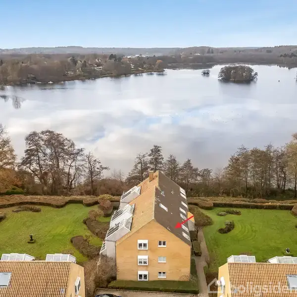 På Mortonsvej 15 udbydes en særdeles attraktiv ejerlejlighed, hvor beliggenheden forener byens bekvemmelighed med naturens ro i en sjældent set balance. Her bor man højt hævet over omgivelserne - med himlen som ledsager og en storslået udsigt over Lyngby Sø som et konstant, smukt pejlemærke.Lejligheden fremstår som en harmonisk kombination af funktionalitet og raffineret enkelhed. Opholdsafdelingen består af en lys og indbydende stue, hvor de store vinduespartier åbner mod søen og de grønne omgi
