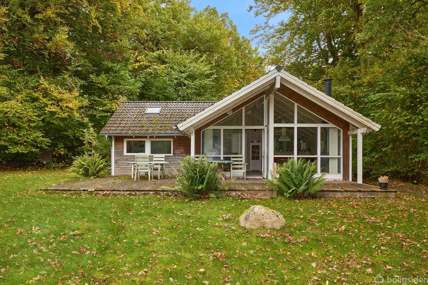 Forestil dig at vågne op hver dag med skoven som din nærmeste nabo, hvor lyden af fuglesang og det blide sus fra træerne bliver en del af dit daglige liv. Mosesvinget 4 er beliggende i et naturskønt område lige i skovkanten, hvor ro og idyl går hånd i hånd med moderne bekvemmeligheder. Med sin gode størrelse og en grund på 1512 m², er dette fritidshus det ideelle valg for dem, der søger både nærhed til naturen og masser plads omkring sig.Denne ejendom nyder godt af dens unikke beliggenhed kun et