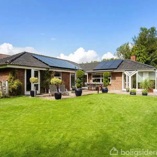 Åbent hus med tilmeldingskrav 7/2 - klik på billede - For enden af en rolig stamvej, hvor børnene trygt kan lege og hverdagen glider let, finder du denne hyggelige og indbydende villa. Huset er ideelt placeret på grunden med optimal udnyttelse af haven, som byder på flere solrige terrasser, hyggelige kroge og et stemningsfuldt bålsted – perfekte rammer til afslapning og udeliv. Indendørs venter en spændende planløsning med hele tre gode børneværelser og et soveværelse. Der er desuden mulighed for at udnytte et værelse med egen indgang og tilhørende bad – perfekt til teenager, gæster eller hjemmekontor. Materialevalget er rustikt og charmerende med bl.a. rå plankegulve, klinker og et helt nyt fyrreplankegulv (2025) i både køkken, TV-stue og den store opholdsstue. Den lyse udestue forlænger sommeren og giver et skønt ekstra opholdsrum. Flere karnapper bidrager med et flot lysindfald og karakter til boligen. Der er også tænkt på både økonomi og bæredygtighed – huset er udstyret med et 4,5 kW solcelleanlæg på taget, som bidrager til en lavere energiregning. Hertil kommer, at der er foretaget udbedringer i forhold til el-rapporten af en autoriseret installatør. I indkørslen er der desuden opsat nye spots i udhænget, som både øger funktionalitet og giver et flot udtryk. Beliggenheden er ideel for børnefamilien med kort og sikker vej til både indskoling, SFO og børnehave. Derudover medfølger både garage og udhus med god opbevaringsplads. En sjældent udbudt bolig, der skal opleves!