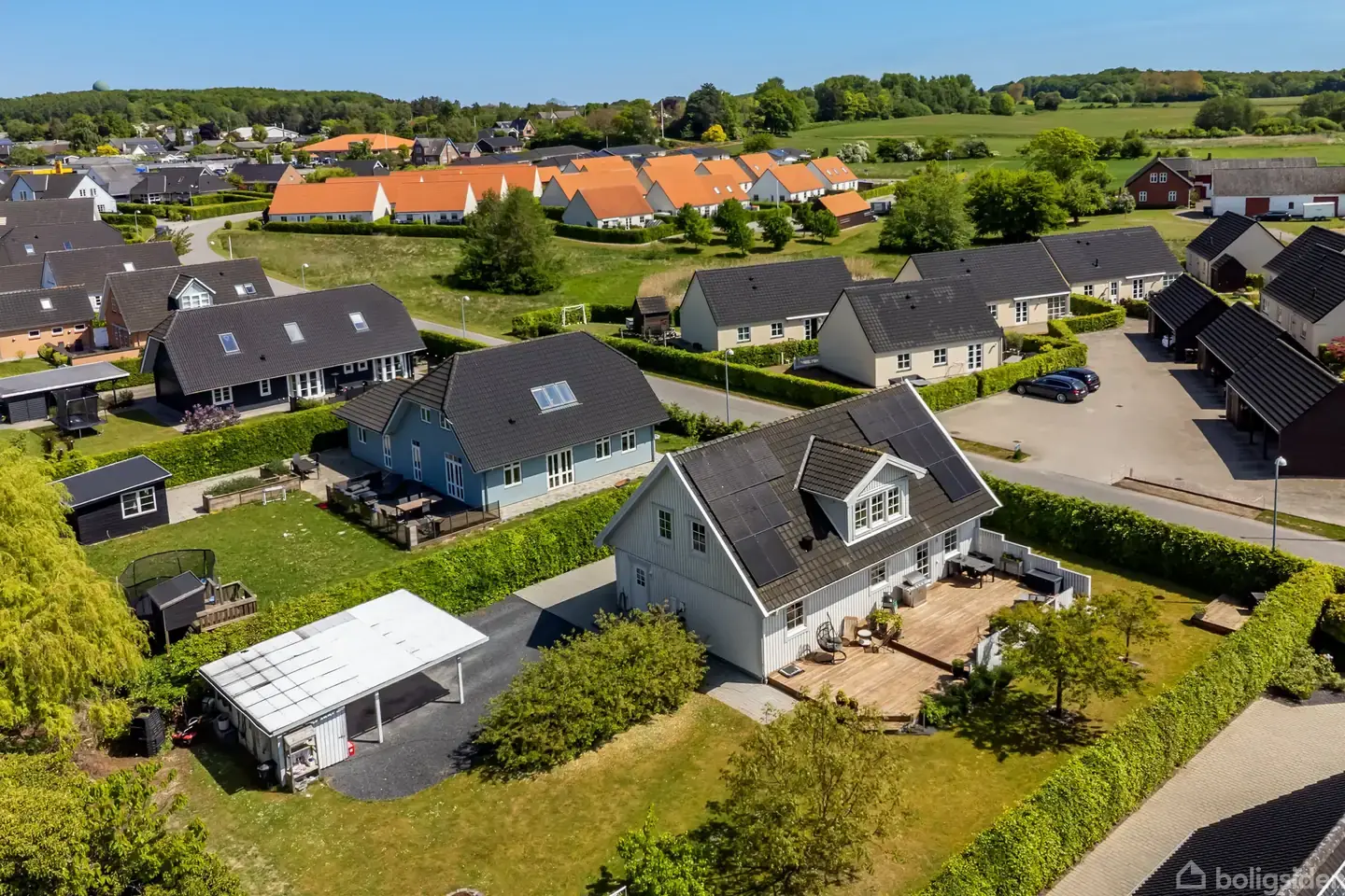 Velkommen til Mosevangen 5 i Stensved – et moderne og indflytningsklart hjem fra 2006, hvor høj komfort, lavt energiforbrug og familievenlige omgivelser går hånd i hånd. Ejendommen ligger i et roligt, trygt boligkvarter med lukkede veje, hvor børnene trygt kan lege, og hvor både skole, børnehave og dagligvarebutikker nås til fods. Beliggenheden kombinerer praktisk nærhed til hverdagens behov med nem adgang til natur og grønne områder. Boligen rummer 181 veludnyttede kvadratmeter fordelt over to