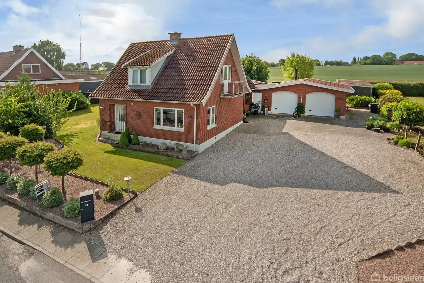 Der er noget særligt ved at komme hjem til Mosevej 19. Roen. Udsigten. Rummeligheden.Her får I følelsen af at bo langt ude på landet – midt mellem åbne marker og højt til himlen – men med byen og hverdagens bekvemmeligheder lige om hjørnet. Bussen stopper ved havelågen, og Bogense nås på få minutter. Det er et sted, der inviterer til familieliv, hobbyer og nærvær. Størrelse og indretning: Villaen på 147 m² byder indenfor i en lys og venlig atmosfære. I træder ind i entréen, hvor trappen snor s