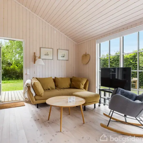 Allerede ved ankomsten til denne indbydende fritidsbolig i Horneby Fælled fornemmes den ro og afslappede atmosfære, der kendetegner ét af områdets mest attraktive hjørner. Huset er opført i 2020 med stor fokus på moderne linjer, funktionalitet og æstetik. Du mærker straks, hvordan boligen ligger fredeligt og trygt i et område fyldt med harmoni. Den klassiske træfacade går flot i spænd med lange, indbydende terrasser, som elegant forbinder hjemmet til den skønne, grønne have. Den sydvendte terras