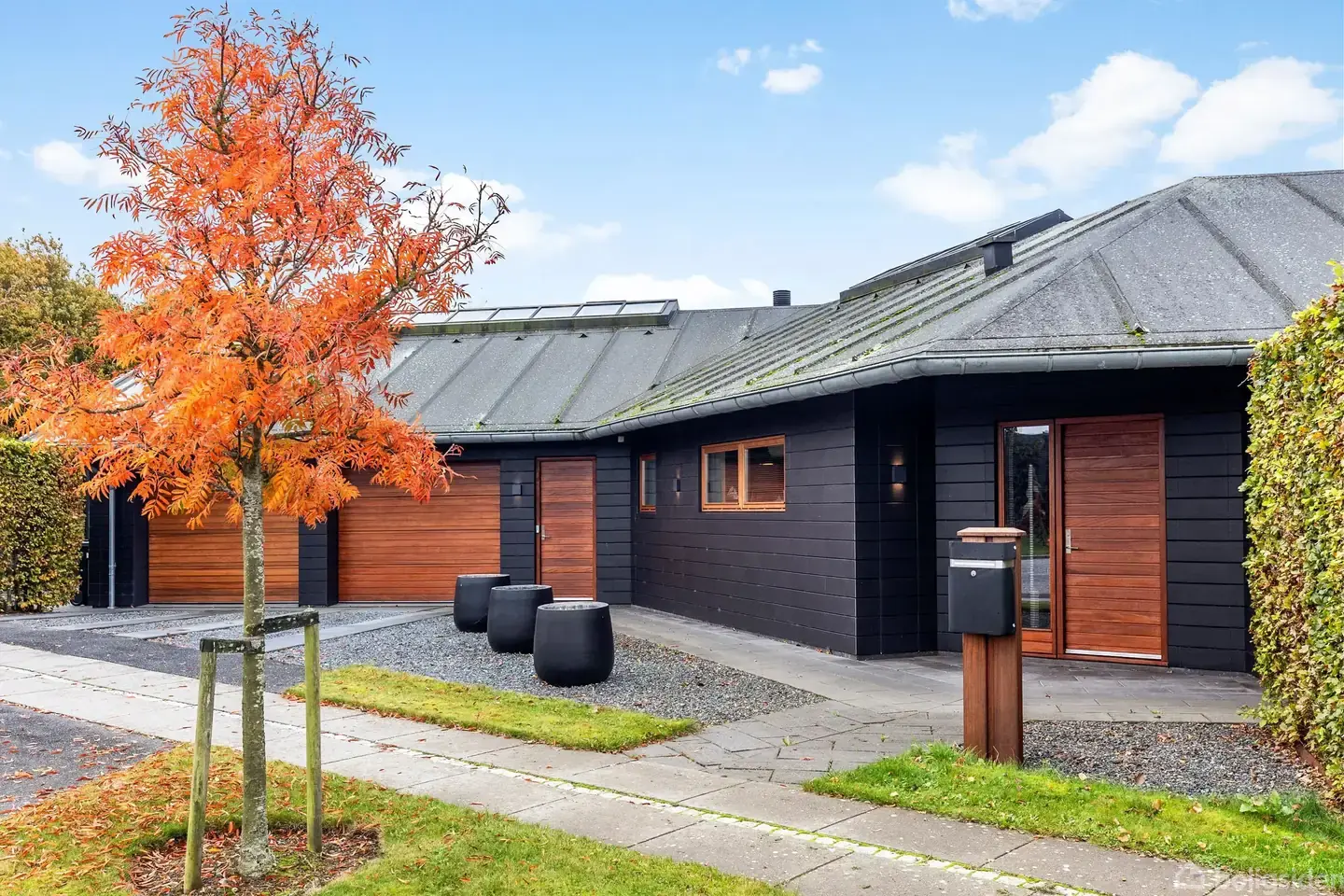 Åbent hus med tilmeldingskrav 2/2 - klik på billede - Drømmer du om kvalitet, lys og spændende indretning? Så bydes I velkommen til denne skønne bolig, der byder på alt det, man kan ønske sig – og lidt til! Beliggende i et attraktivt område med golfbanen som nærmeste nabo og med hverdagens bekvemmeligheder indenfor rækkevidde. Boligen præsenterer sig med kvalitetsmaterialer og gennemtænkte detaljer i alle rum.Du får 185 m2 liebhaveri med 75 m2 integreret garage/værksted samt 51 m2 spændende kælder. Det naturlige lysindfald fra ovenlysvinduer med sensor skaber en behagelig atmosfære, mens den spændende planløsning er ideel for både børnefamilien og parret med sans for stil og funktionalitet. Indretning: Fra garagen er der direkte adgang til stort bryggers, lækkert køkken i åben forbindelse til en spændende stue med både spise- og sofaarramgement, entre, et stort soveværelse, walk-in closet, to gode værelser, samt hele to flotte badeværelser udført i moderne design. Den integrerede garage er en sjælden luksus – fuldt isoleret på linje med huset, og med både toilet, praktisk viktualierum og teknikrum. I kælderen finder du en indbydende ”herre-afdeling”, perfekt til hobby, fritid eller hyggelige sammenkomster. Udendørs inviterer den lækre terrasse til både sol og skygge, hvor det overdækkede areal i midten skaber en naturlig oase – ideel til afslapning og sociale stunder året rundt. Kort sagt: En bolig, hvor kvalitet, komfort og funktionalitet mødes i smuk harmoni. Hvem kommer først? Ring 86427055 for fremvisning af denne perle. Supplerende oplysninger: Tag: Paptag Ydermur: Tegl Antenneforhold og internetforbindelse: Fiberflex Kloakforhold: Separeret kloak - vi henviser til ejendomsdatarapport Afstand til skole og daginstitution: 10 min. gang, Hornbæk Skole Afstand til indkøb: 10 min. gang - Rema Overtagelse: Aftales nærmere